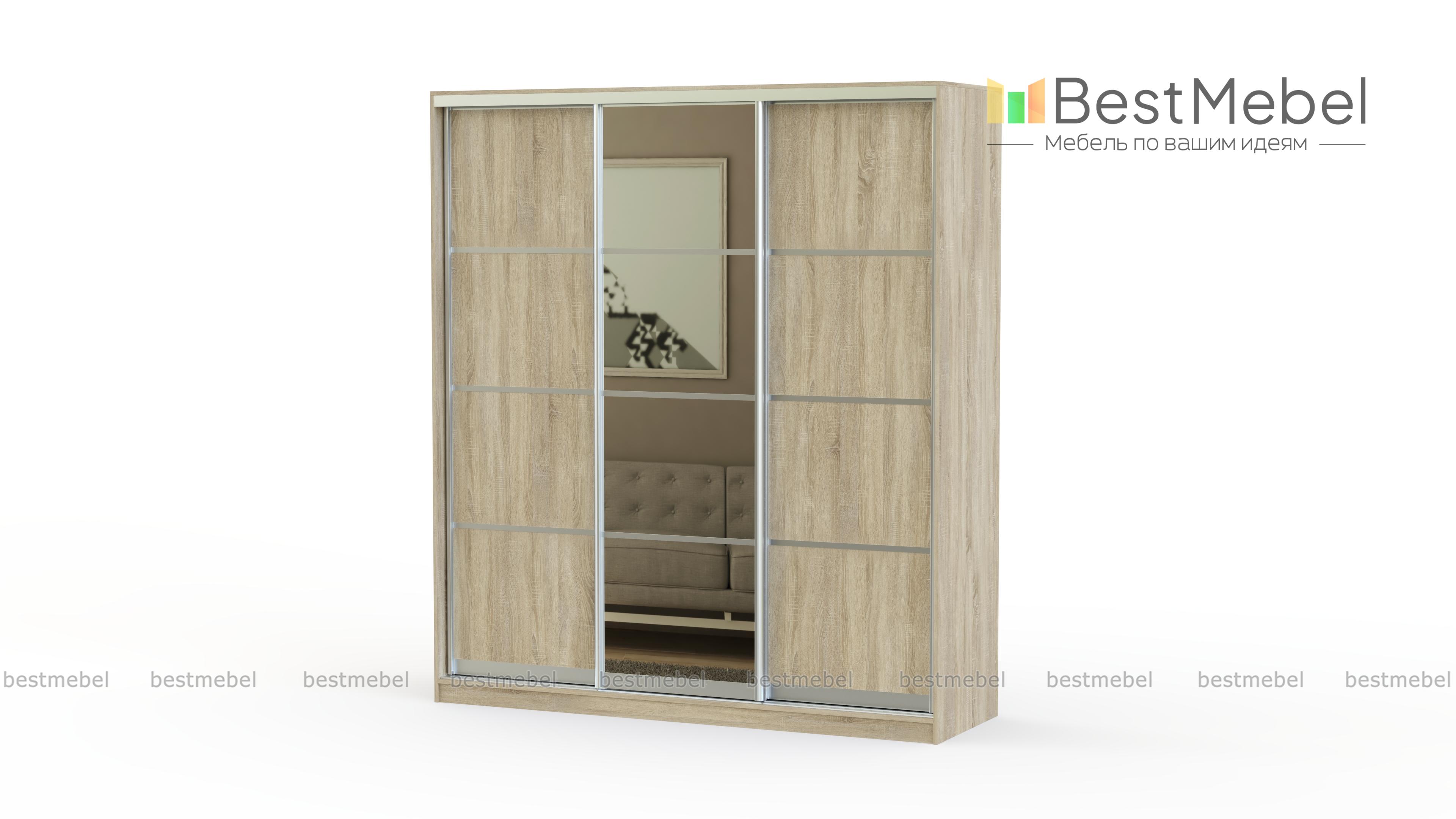 Шкаф-купе НЛ-860 BMS не остаётся незамеченной среди наших покупателей и притягивает восторженные взгляды Ваших гостей. Расцветка модели навевает тепло, уют и гармонию. Зеркальная центральная створка и правильная геометрическая форма делают мебель действительно особенной. За тремя створками находится богатое внутреннее пространство, начинка которого может полностью зависеть от пожелания клиента или же выполняется по типовым эскизам. Мебель прослужит Вам долгое время, потому что все используемые материалы экологичные и сертифицированные, имеет защитную плёнку на зеркале, надёжную систему направляющих и добросовестный труд наших мастеров. Купить шкаф-купе НЛ-860 BMS по низкой цене можно на нашем интернет-портале без особых хлопот.