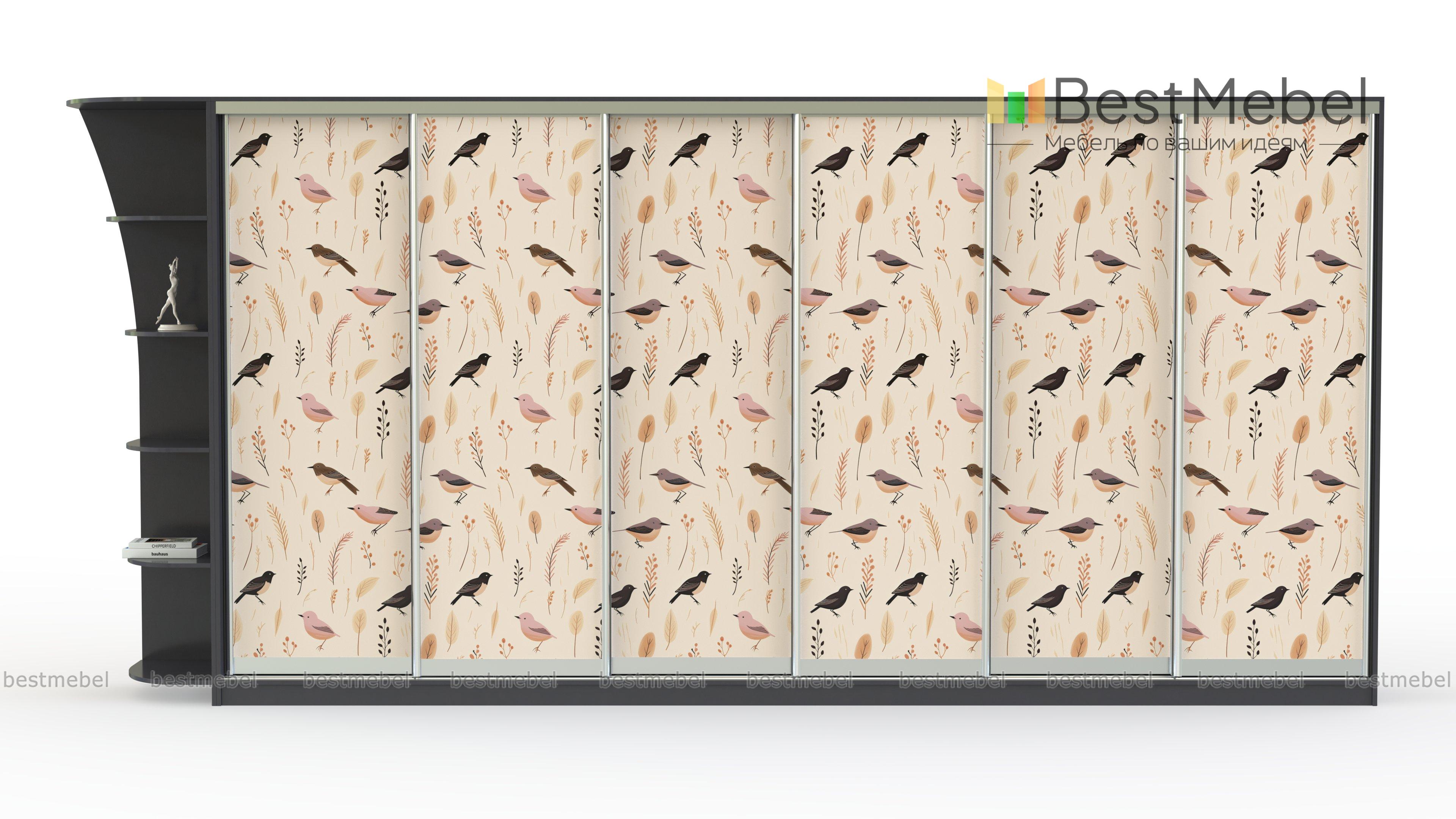 Шкаф-купе Природа 5 BMS лаконичен и вместителен, а модный принт в природной тематике оживляет пространство. Шестидверный шкаф, совмещенный со стеллажом, заменяет сразу несколько предметов меблировки, делая интерьер эстетичным. Сужающийся книзу стеллаж с радиусными полками не только добавляет функциональности, но и придает дизайну завершенность. Купить шкаф-купе Природа 5 BMS с индивидуальным подбором размеров, цвета и наполнения вы сможете на сайте нашего интернет-магазина.