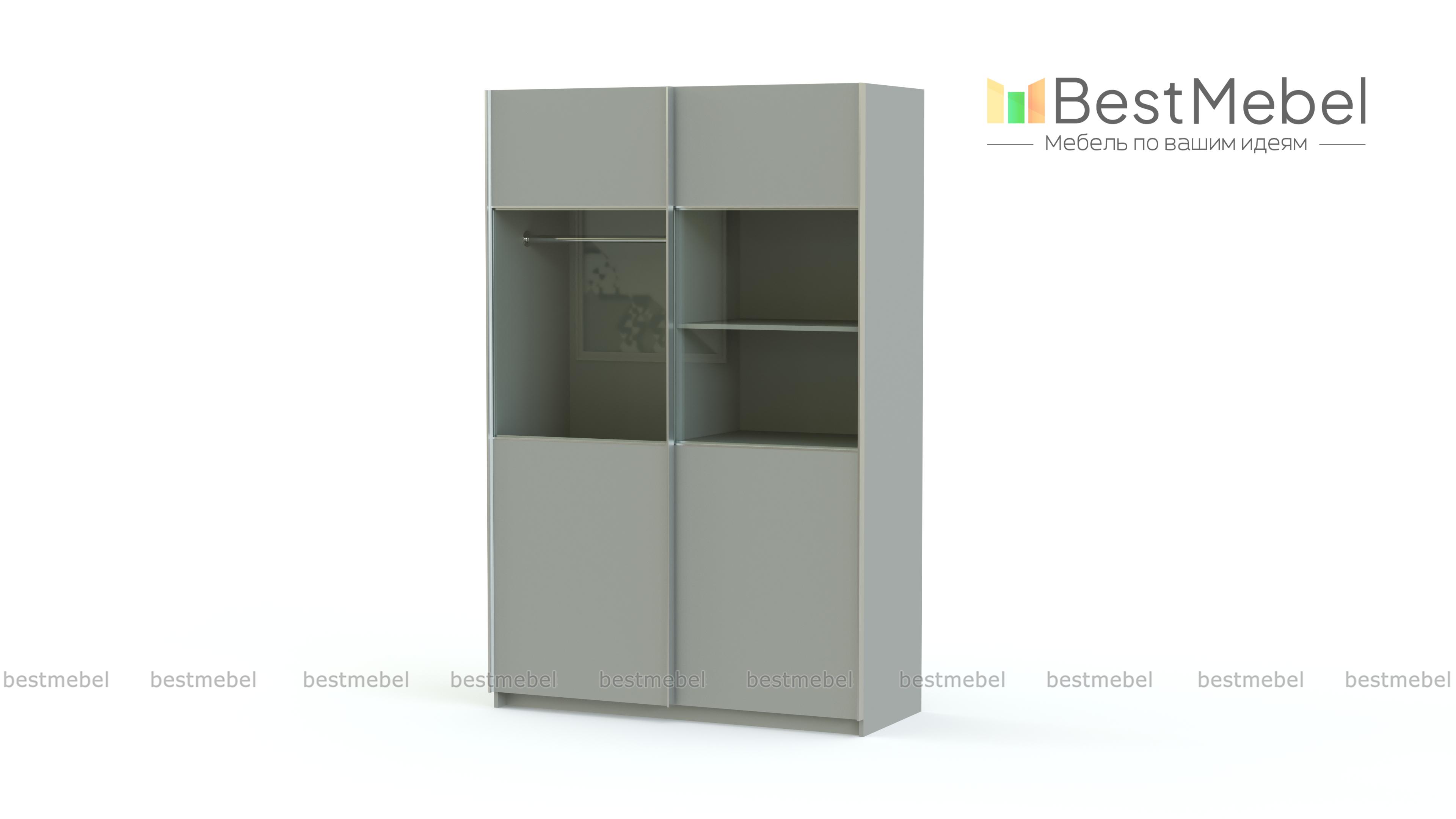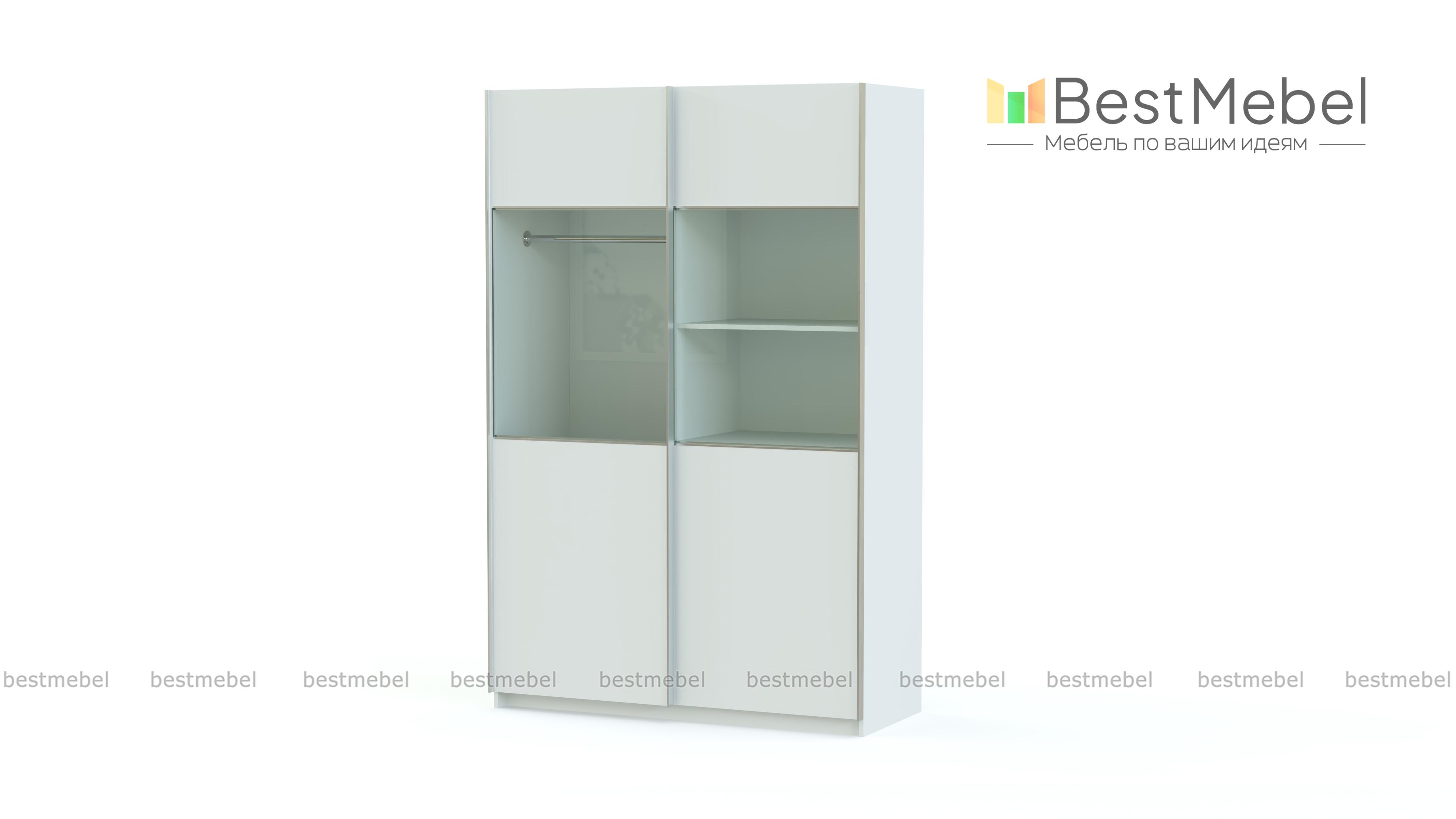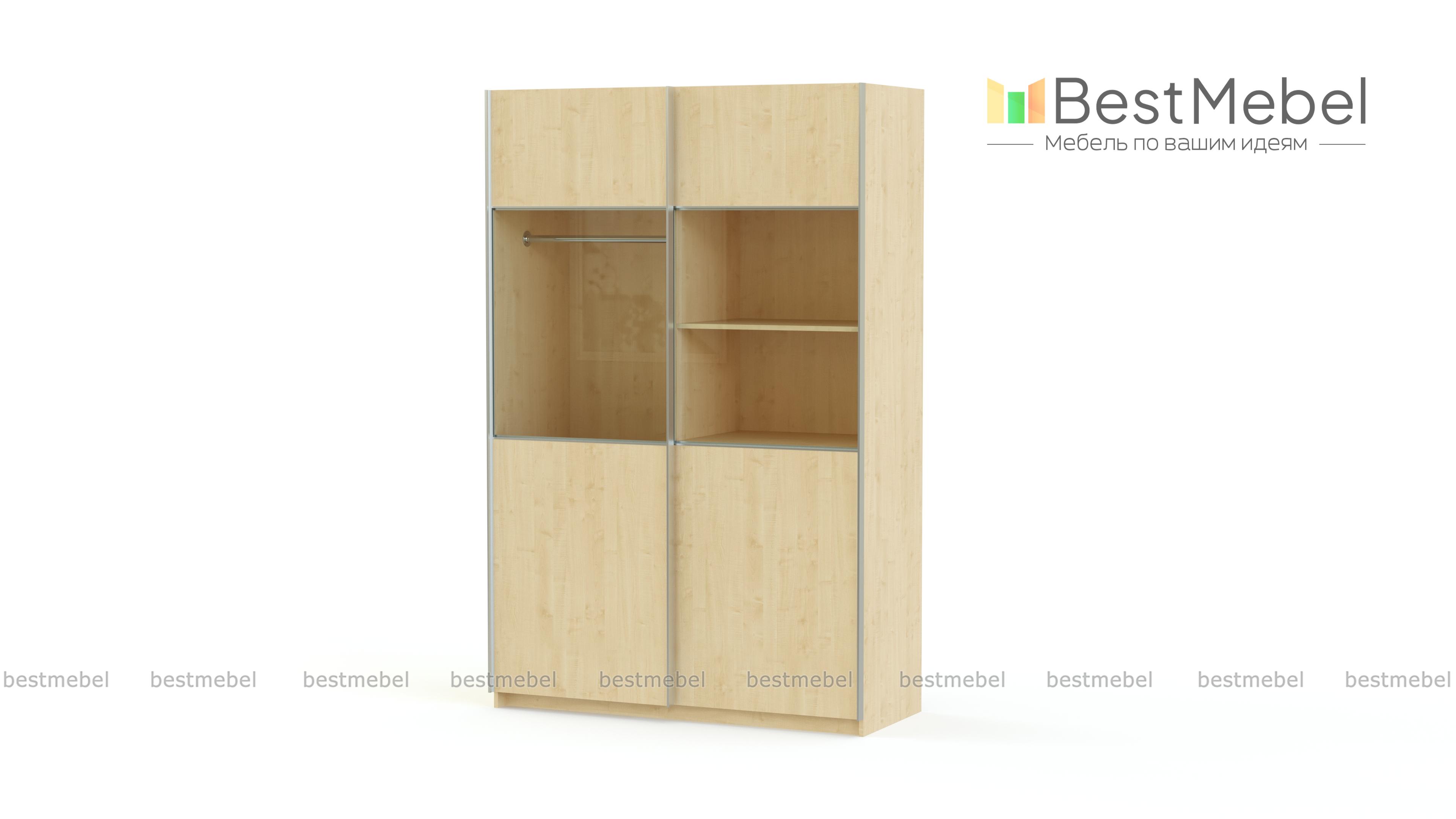 Двухдверный шкаф-купе Риан 9 BMS привлекателен, в первую очередь, необычным дизайном. Раздвижные двери модели, выполненные в теплых оттенках массива дерева, в средней части имеют широкую стеклянную вставку, что оригинально смотрится и легко позволит найти нужную вещь. Шкаф оборудован стандартными бельевым и одежным отделением со штангой. Фасады выполнены из прочных, устойчивых к повреждениям материалов и оснащены удобными профиль-ручками цвета хрома.