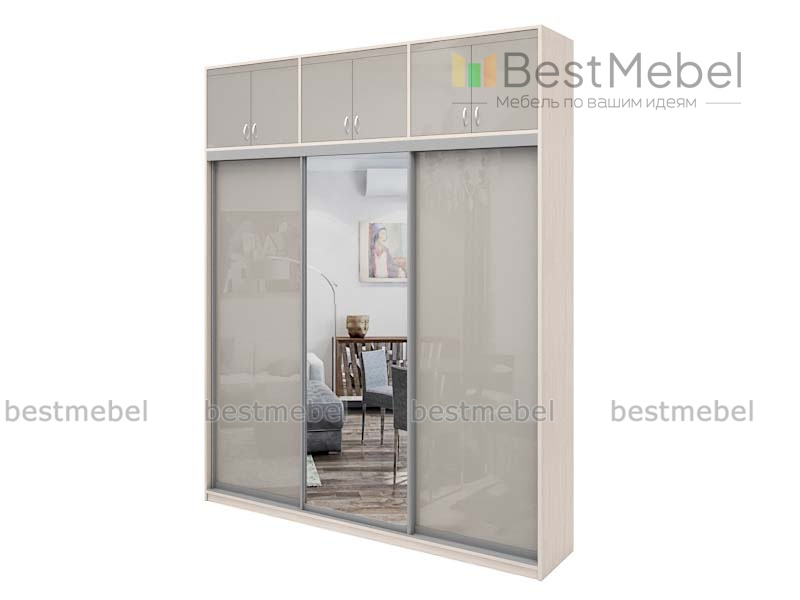 Шкаф-купе с антресолью Деметра 01 BMS привлекает внимание вместительностью и визуальной легкостью. Комбинированная модель представляет собой сочетание трехдверного отделения купе с полками и штангой и антресоли с распашными дверцами, незаменимой для хранения сезонных вещей. Светло-серые глянцевые фасады шкафа дополняет большое зеркало, которое придает помещению дополнительные объем и глубину. Купить шкаф-купе с антресолью Деметра 01 BMS для современного интерьера приглашаем в наш интернет-магазин.
