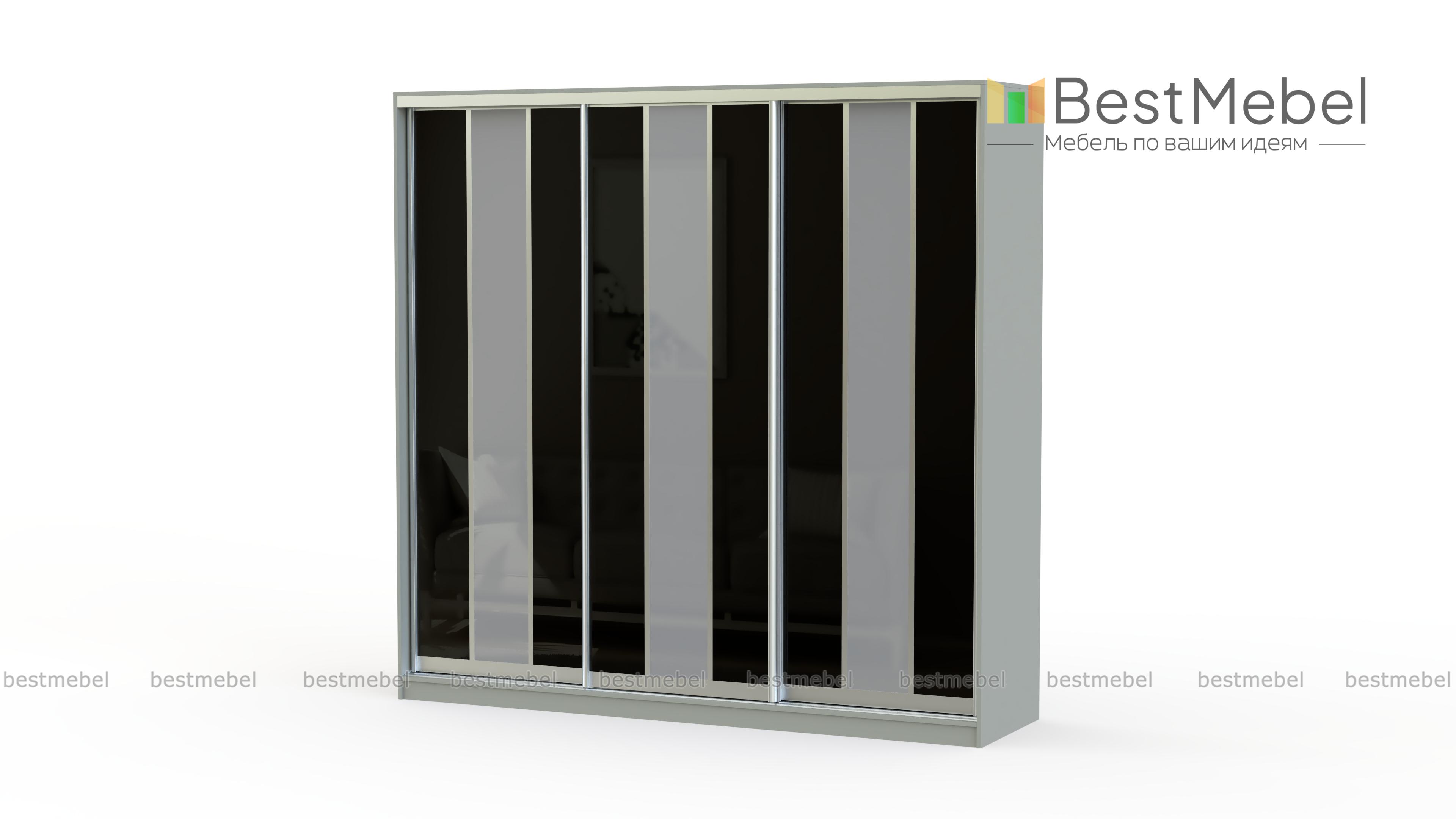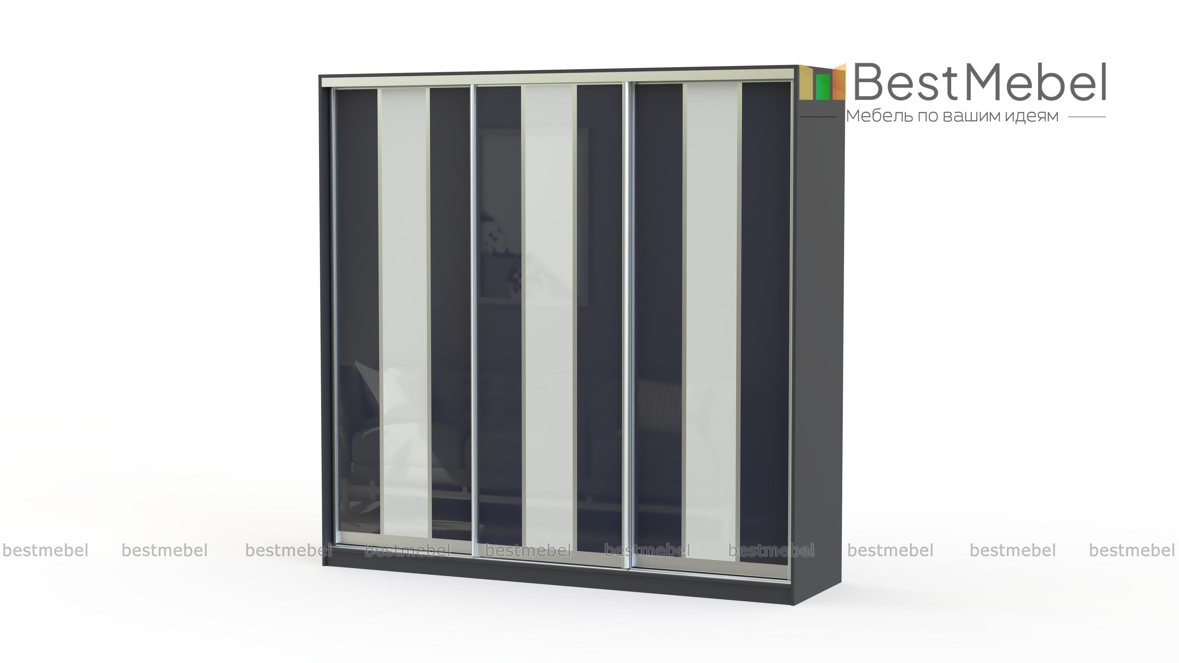 Просторный и функциональный шкаф-купе Спарк – это практичное и элегантное изделие. Оригинальный дизайн фасада создает ощущение трех, стоящих рядом шкафов. А сочетание холодных классических цветов станет украшением современного интерьера в стиле Хай-Тек.