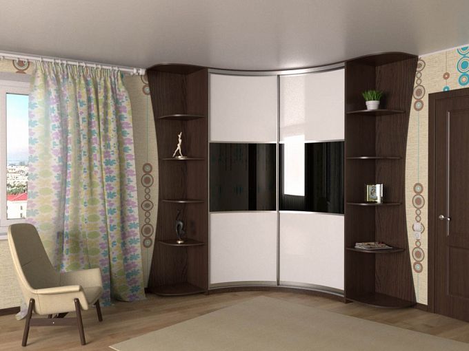Радиусный шкаф-купе Лиана 22 BMS будет эффектно смотреться в интерьере гостиной или просторной спальни. Угловая модель с вогнутым фасадом и скругленными панелями торцевых стеллажей позволит создать оригинальный, запоминающийся интерьер в современном стиле. Двухдверное раздвижное отделение разместит одежду, обувь и сезонные вещи, а для предметов декора, книг, уходовых средств и мелочей предусмотрены открытые полки. Купить радиусный шкаф-купе Лиана 22 BMS, выполненный в черно-белой гамме, приглашаем в наш интернет-магазин.