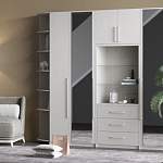 Большой распашной шкаф Т3 BMS, выполненный в светлых древесных тонах и декорированный зеркалами в полный рост, станет универсальным решением для просторной спальни или гостиной. Конструкция представляет собой комбинацию нескольких модулей – однодверных шкафов, торцевого стеллажа и комбинированной секции с выдвижными ящиками, открытыми полками и распашной антресолью. Разные типы отделений позволят упорядочить хранение предметов гардероба и эффектно разместить книги и интерьерные украшения. Купить большой распашной шкаф Т3 BMS приглашаем в наш интернет-магазин.