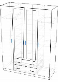 Четырехстворчатые распашные шкафы с зеркалом в Москве