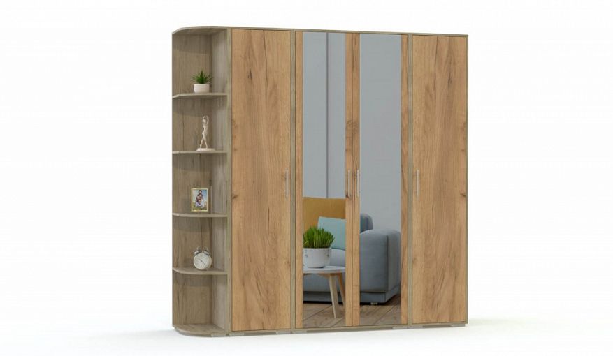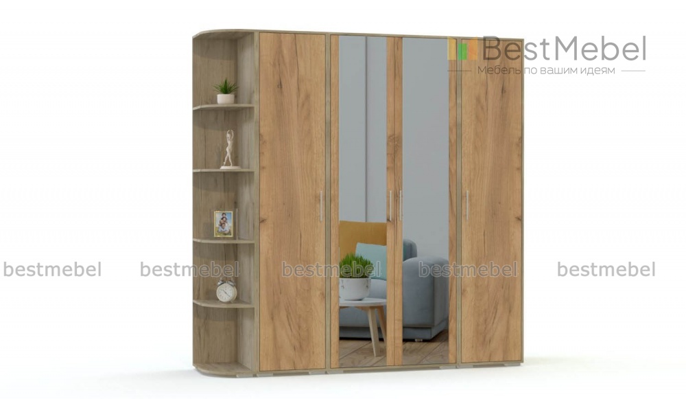 Распашной шкаф Берта 2 BMS поможет вам разместить как одежду и постельные принадлежности, так и книги, необходимые под рукой мелочи и предметы декора. Комбинированная модель объединила бельевой пенал, платяные отделения и торцевой стеллаж с радиусными полками. Теплые крафтовые оттенки фасада делают интерьер уютнее, а зеркальные створки визуально расширяют границы комнаты. Купить распашной шкаф Берта 2 BMS с учетом необходимых размеров приглашаем в наш интернет-магазин.