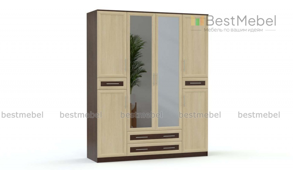 Распашной шкаф Грация BMS – это классическая модель с рамочными фасадами, выполненная в контрастных древесных тонах. Продуманная система хранения включает в себя платяное отделение, бельевые секции с полками и выдвижные ящики разных размеров. Распашные дверцы обеспечивают содержимому шкафа отличный обзор, а ростовые зеркала в центральной части помогут сэкономить на отдельном аксессуаре. Купить распашной шкаф Грация BMS приглашаем в наш интернет-магазин с выбором фурнитуры и цвета по каталогу.