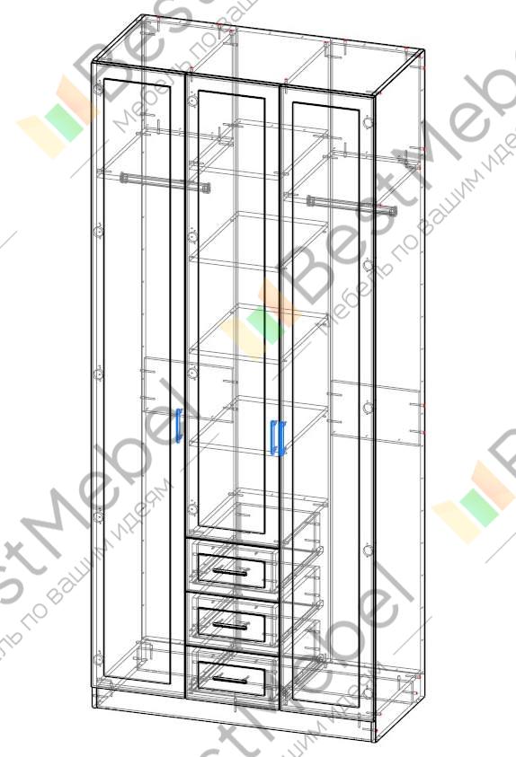 Распашной шкаф Крона 15 BMS отличается характерными для всей серии надежностью, вместительностью и элегантным дизайном. Модель выполнена в контрастных древесных тонах бежевой гаммы и органично впишется в интерьер спальни или прихожей. За тремя распашными дверцами с рамочными фасадами – два платяных отделения и центральная секция с полками и выдвижными ящиками для мелочей. Купить распашной шкаф Крона 15 BMS и оборудовать эффектную и функциональную комнату вам поможет наш интернет-магазин.