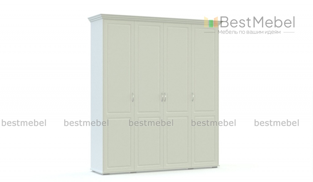 Распашной шкаф Мирма 2 BMS – это классическая модель с фрезерованными фасадами и карнизом. Исполнение в белом цвете придает четырехдверному шкафу визуальную легкость, а просторные внутренние отделения обеспечивают прекрасную вместительность. Шкаф поможет вам создать элегантный спальный интерьер и надолго сохранит эстетичный вид благодаря использованию износостойких материалов и качественной фурнитуры. Купить распашной шкаф Мирма 2 BMS вы сможете в нашем интернет-магазине, по желанию изменив цвет и размеры.