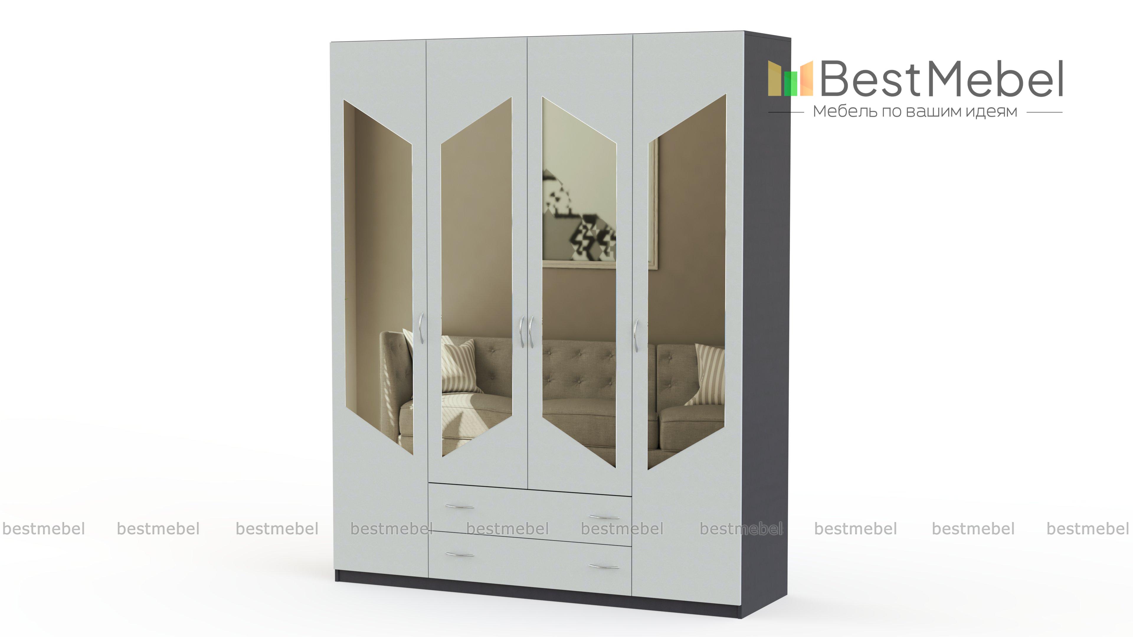 Распашной шкаф Паулина 38.3 BMS сочетает в себе практичность классической конструкции и оригинальный дизайн, надежность и доступную цену. Четырехдверная модель оборудована платяным отделением, двумя бельевыми и широкими выдвижными ящиками в нижней части. Зеркала на фасаде придают эффектный вид строгому распашному шкафу и делают комнату визуально просторнее и светлее. Купить распашной шкаф Паулина 38.3 BMS и разместить большое количество вещей вам поможет наш интернет-магазин.