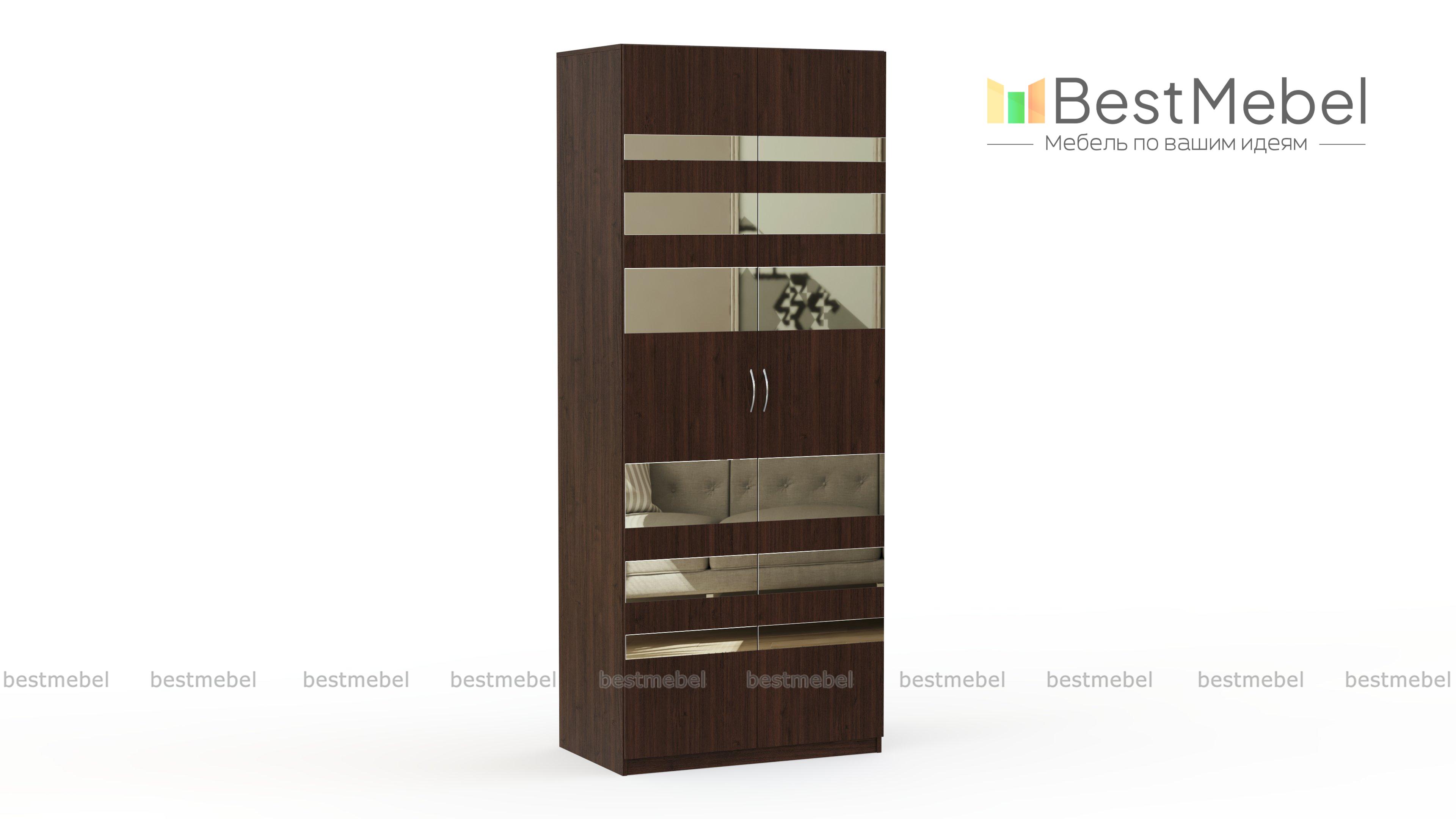 Распашной шкаф Паулина 44 BMS привлекает необычным дизайном фасада и поможет создать не только функциональный, но и запоминающийся интерьер. Лаконичный по форме двухдверный шкаф выполнен в древесных тонах и декорирован по фасаду зеркальными накладками, которые придают комнате дополнительный объем и глубину. Для хранения одежды на плечиках и прочих предметов гардероба модель оборудована вместительным платяным отделением. Купить распашной шкаф Паулина 44 BMS приглашаем к нам в интернет-магазин.