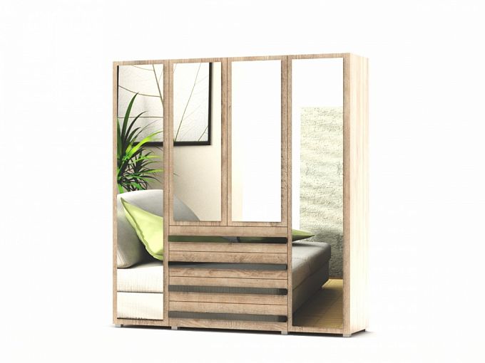 Распашной шкаф Стайл Люкс 15 BMS – это продуманная комбинированная конструкция и эффектное сочетание цветов и фактур. Крупногабаритная модель будет гармонично смотреться в просторных помещениях – спальнях или гардеробных комнатах. Внутреннее наполнение из платяного отделения со штангой и двух бельевых секций дополнено четырьмя вместительными выдвижными ящиками в основании. Фасады древесных тонов декорированы зеркалами в полный рост и глянцевыми ручками-планками. Купить распашной шкаф Стайл Люкс 15 BMS по выгодной цене приглашаем в наш интернет-магазин.