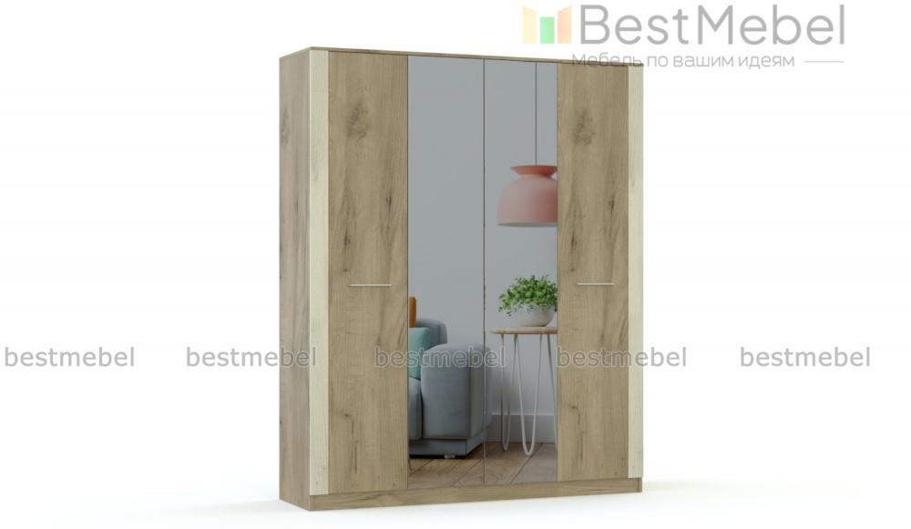 Распашной шкаф Венета BMS выполнен в светлых древесных тонах из ламинированной плиты высокого качества, а контрастный вертикальный декор зрительно вытягивает помещение в высоту. Четырехдверная модель с просторными внутренними отделениями порадует владельцев вместительностью и легко решит проблему хранения большого количества вещей. Зеркальные центральные створки удобны для примерки и придают комнате дополнительную глубину. Купить распашной шкаф Венета BMS вы сможете недорого в нашем интернет-магазине.