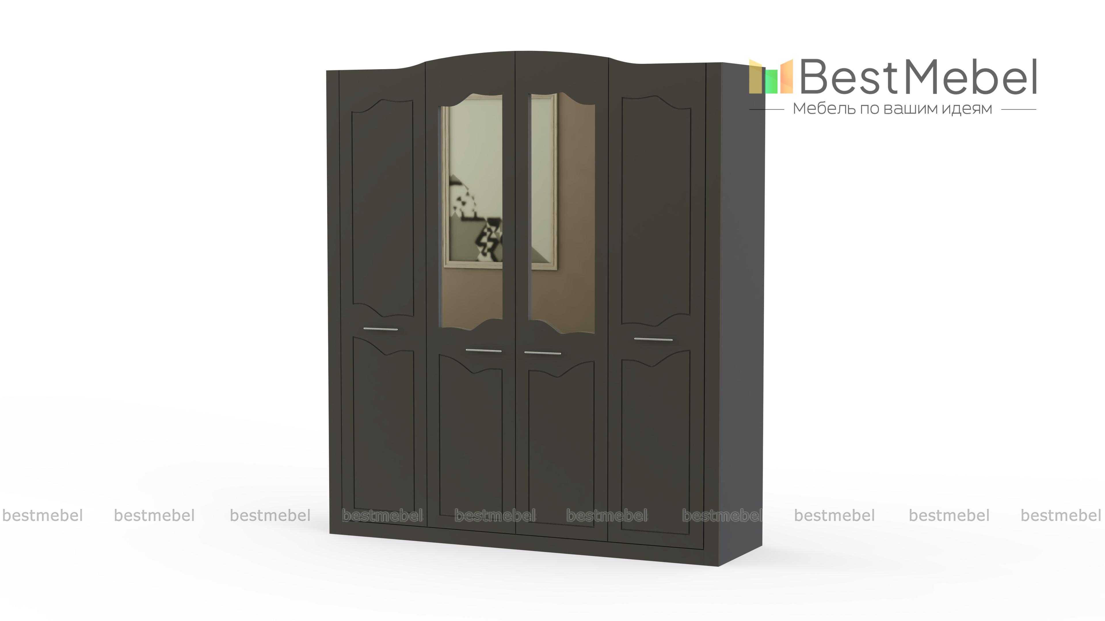 Шкаф 4-х дверный Ева-10 BMS отличают визуальная легкость и сдержанный классический декор. Крупногабаритная модель в светлых тонах дополнит комфортную спальню или гардеробную, организует хранение и станет украшением комнаты. Фигурно вырезанные дверцы декорированы фрезеровкой, а центральные дополнены зеркалами. За распашными дверцами – штанги и бельевое отделение с полками. Износостойкие и простые в уходе поверхности надолго сохранят эстетичный вид. Купить шкаф 4-х дверный Ева-10 BMS вы сможете в нашем интернет-магазине, подобрав необходимые параметры.