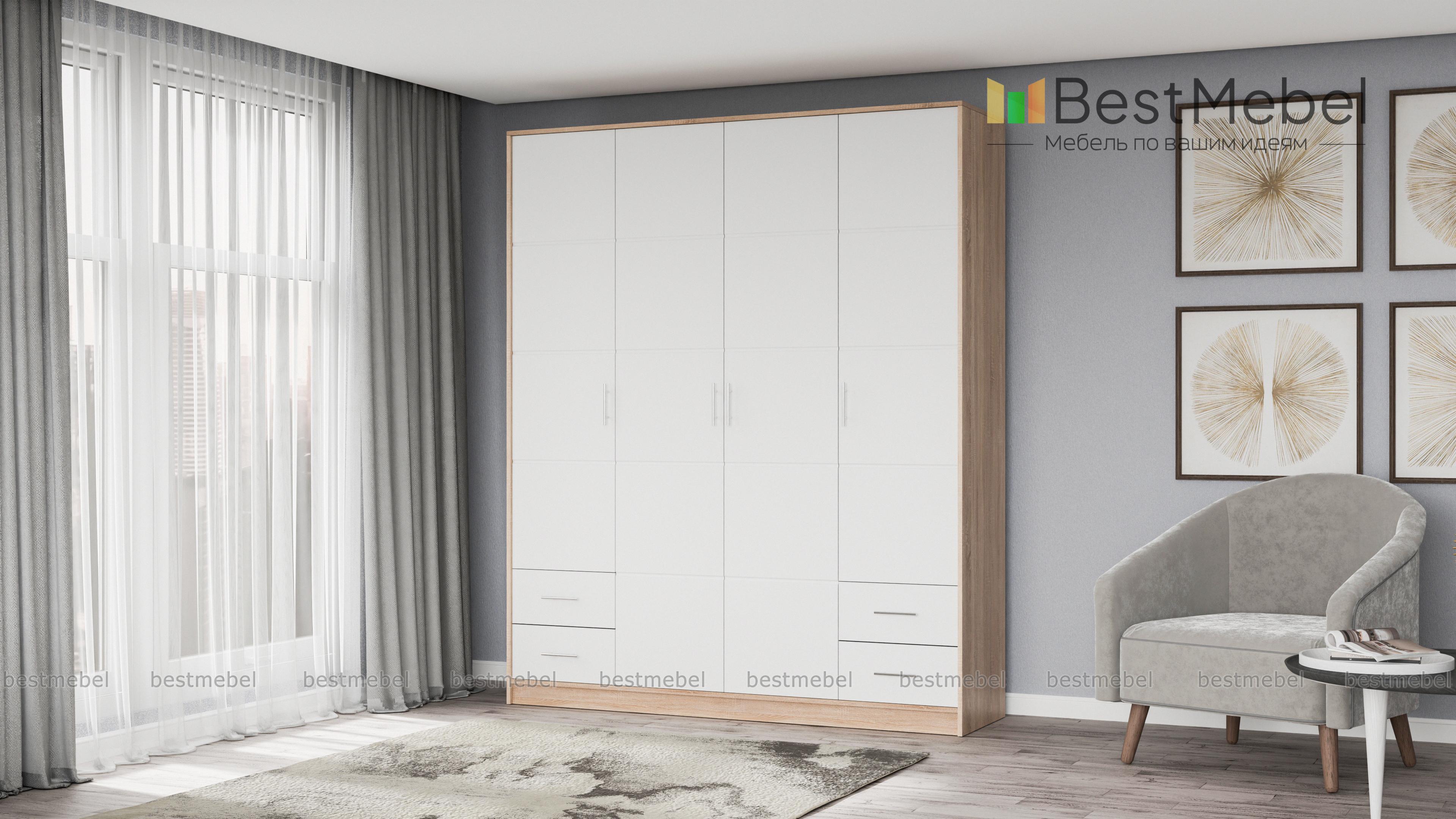 Шкаф Елена 4 BMS отличается лаконичным современным дизайном и привлекает внимание геометричной фрезеровкой фасадов. Вместительная модель станет незаменимым элементом интерьера спальни и позволит максимально удобно разместить предметы гардероба и аксессуары. Шкаф с корпусом в древесных оттенках и темными матовыми фасадами оборудован платяным отделением со штангой и полками. Для мелочей предусмотрены четыре выдвижных ящичка в основании. Купить шкаф Елена 4 BMS недорого приглашаем в наш интернет-магазин.