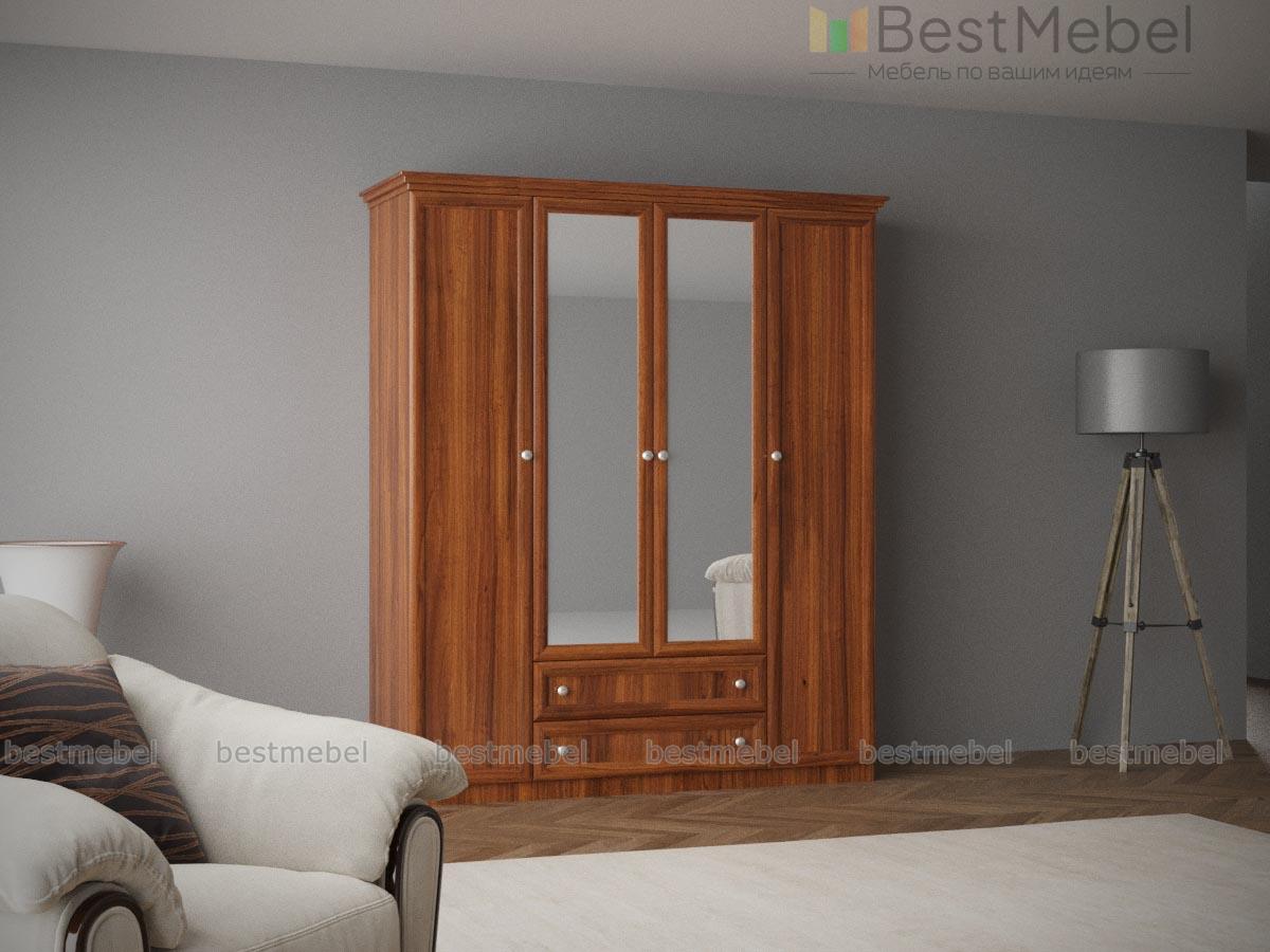 Шкаф Диона BMS привлекает внимание традиционным оформлением рамочного фасада, выполненного из ламинированной ДСП и МДФ под массив дерева. Распашная модель с фрезерованным карнизом и зеркалами станет частью уютного пространства вашей спальни, гостиной или прихожей. Для удобного хранения - платяное отделение, бельевые полки и два вместительных выдвижных ящика в основании. Купить шкаф Диона BMS вы сможете в нашем интернет-магазине, самостоятельно подобрав цвет и фурнитуру.