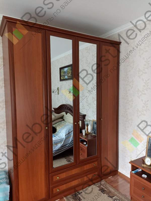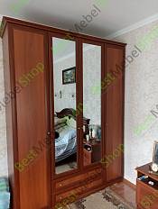 Был чётко заказан, доставлен, куплен и собран платяной шкаф на 4 секции с двумя зеркальными дверями по центру, плюс бонус - тумба с выдвижными ящичками и угловой элемент во всю высоту шкафа. Доставка, цена и качество изделий хорошие. Всё в схеме сборки чётко указано и расписано, все комплектующие правильно указаны и пронумерованы, все элементы и отверстия совпали и сошлись нормально.Пожелание - пожёстче укрепить задник зеркал в рамках верей не только плёнкой, а жёстко клеем на фанеру или ДВП (3 мм) для прочности и надёжности.
