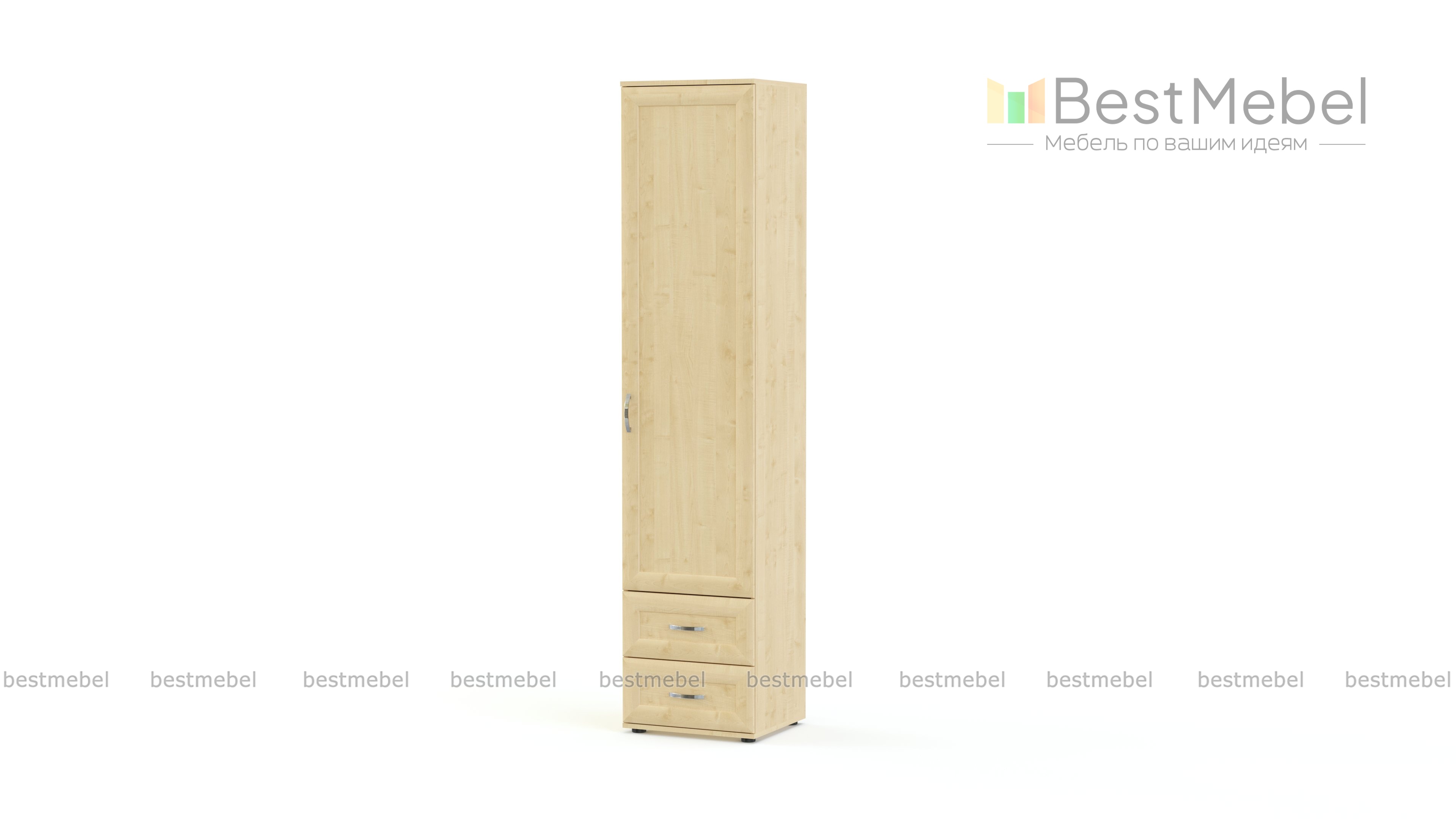Шкаф Минерва BMS – высокая узкая модель в классическом стиле, которая дополнит комплект в спальне, прихожей, или станет самостоятельным предметом меблировки. Шкаф не займет много места и компактно разместит одежду и мелкие вещи в распашном отделении с полками и двух выдвижных ящиках основания. Нейтральные древесные тона и рамочные фасады органично впишутся в традиционный домашний интерьер. Купить шкаф Минерва BMS по доступной цене вы сможете в нашем интернет-магазине.