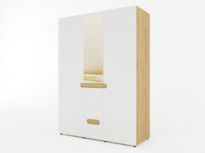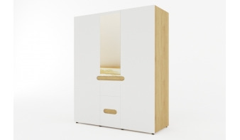 Шкаф Леонард 1.1 BMS станет универсальным решением для современных минималистичный интерьеров. Светлые древесные тона и белый полуглянец эффектно подчеркивают лаконичность формы, фасады дополнены декоративными скругленными вырезами и большим зеркалом. За тремя распашными дверцами – два отделения со штангой, бельевые и антресольные полки Дополняют продуманную систему хранения выдвижные ящики для мелочей. Купить шкаф Леонард 1.1 BMS вы сможете в нашем интернет-магазине по лучшей цене.