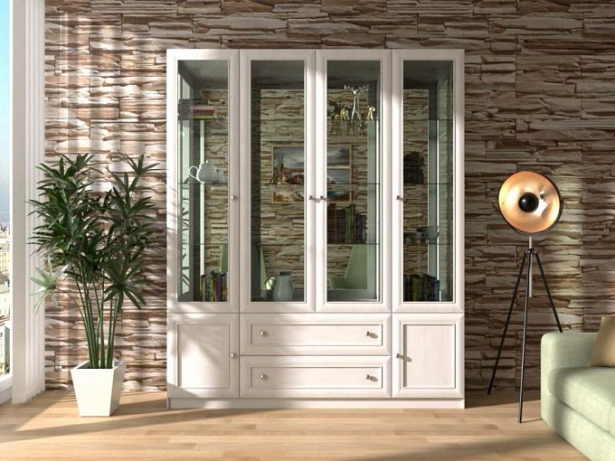 Шкаф Джина 10 BMS станет настоящим украшением классических интерьеров. Вместительный и визуально легкий, шкаф эффектно сочетает стекло, зеркала и белые рамочные поверхности. В нижней части модели располагаются закрытые распашные отделения и два выдвижных ящика для мелких вещей, а верхняя представляет собой роскошную витрину с полками, зеркальной задней стенкой и стеклянными боковинами. Купить шкаф Джина 10 BMS и эффектно разместить изысканную посуду и предметы декора вам поможет наш интернет-магазин.