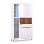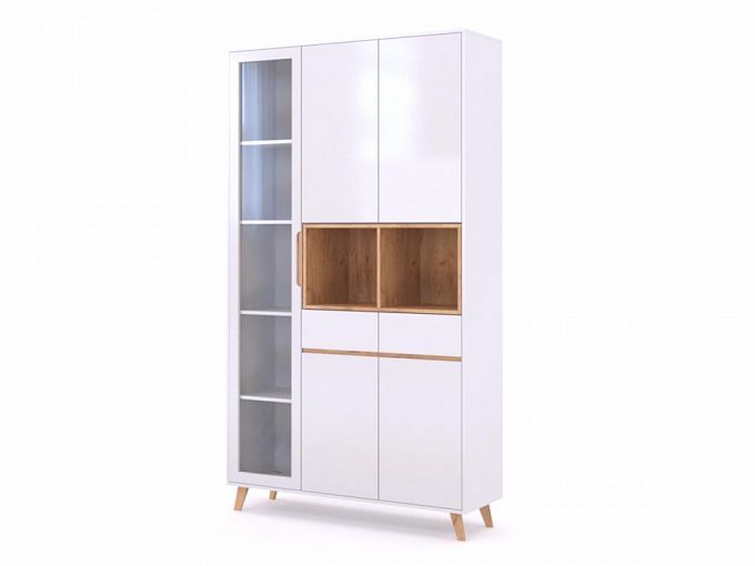 Шкаф книжный Фоко 1 BMS выполнен в сочетании древесных тонов с белым глянцем и гармонично впишется в современные интерьеры. Комбинированная модель оборудована глухими распашными отделениями для разнообразных бытовых вещей, парой выдвижных ящиков для мелочей, разделенной перегородкой нишей и застекленными книжными полками. Расположенный на высоких скошенных ножках, шкаф отличается устойчивостью и визуальной легкостью. Купить шкаф книжный Фоко 1 BMS приглашаем к нам в интернет-магазин.