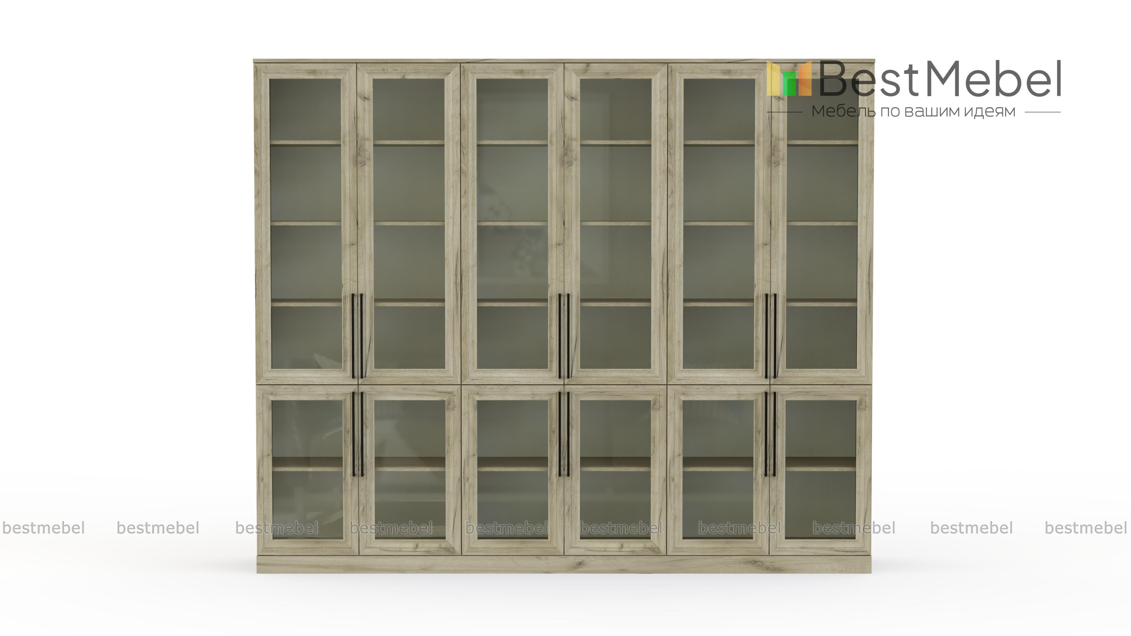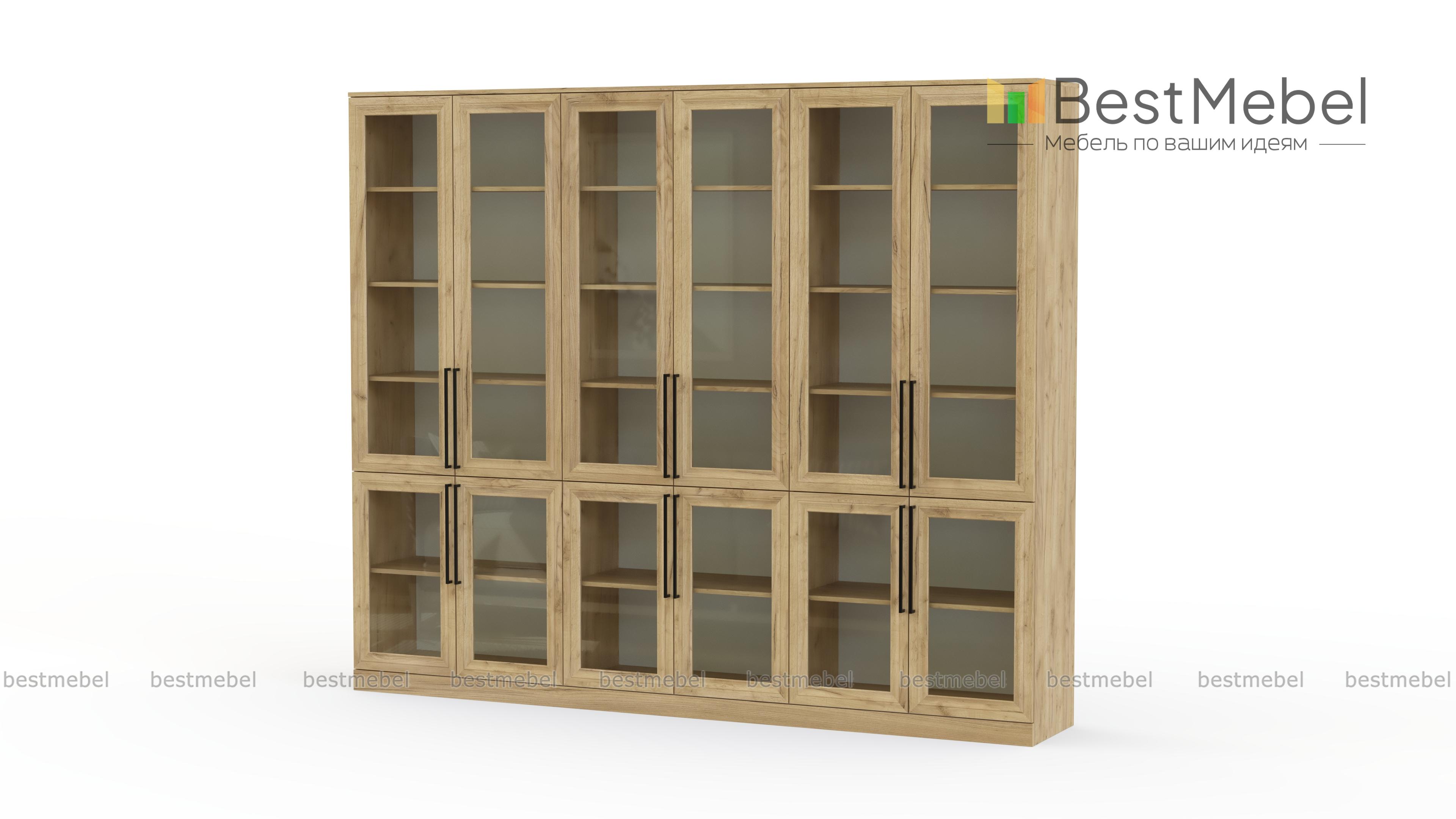 Шкаф книжный Рим 5 BMS с застекленным фасадом будет востребован в домашнем интерьере, офисе или библиотеке. Внутри шести распашных отделений — больших и малых, расположены полки для книг и журналов, документов, предметов коллекции и других памятных вещей. На дверцы классического дизайна с фрезерованными рамками установлены удлиненные стильные ручки. Купить шкаф книжный Рим 5 BMS с выбором размеров, цвета и фурнитуры вы сможете в нашем интернет-магазине.