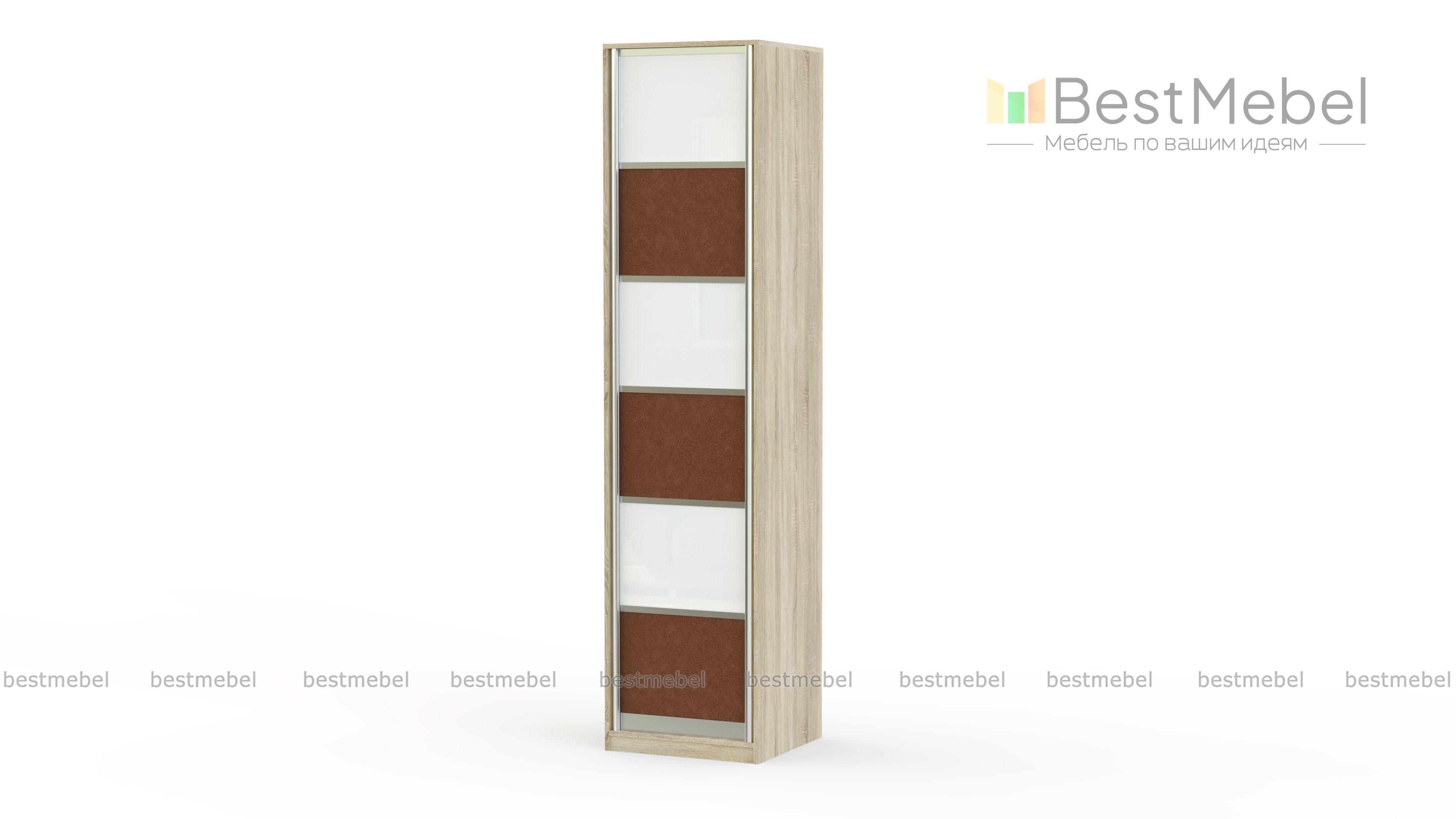 Шкаф-пенал Нелли 26 BMS лаконичен по форме, но смотрится эффектно благодаря оригинальному дизайну фасада, в оформлении которого сочетаются вставки в пленке оракал, экокожа и серебристый профиль. Распашная модель системы «Версаль» надежна в эксплуатации и оборудована штангой и антресольной полкой. Компактный по ширине, пенал сэкономит полезную площадь комнаты. Купить шкаф-пенал Нелли 26 BMS по выгодной цене вы всегда сможете в нашем интернет-магазине.