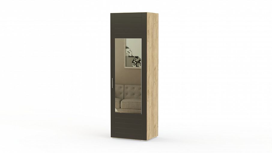 Шкаф-пенал Санни Ф 2 BMS дополнит или заменит платяной шкаф в интерьере современной прихожей. Компактный, но достаточно вместительный, пенал оборудован штангой для вешалок с одеждой, а на фасаде располагается большое зеркало. В оформлении модели природные цвета и фактуры гармонично сочетаются с лаконичной горизонтальной фрезеровкой. Купить шкаф-пенал Санни Ф 2 BMS с возможностью выбора размеров, цвета и фурнитуры приглашаем в наш интернет-магазин.