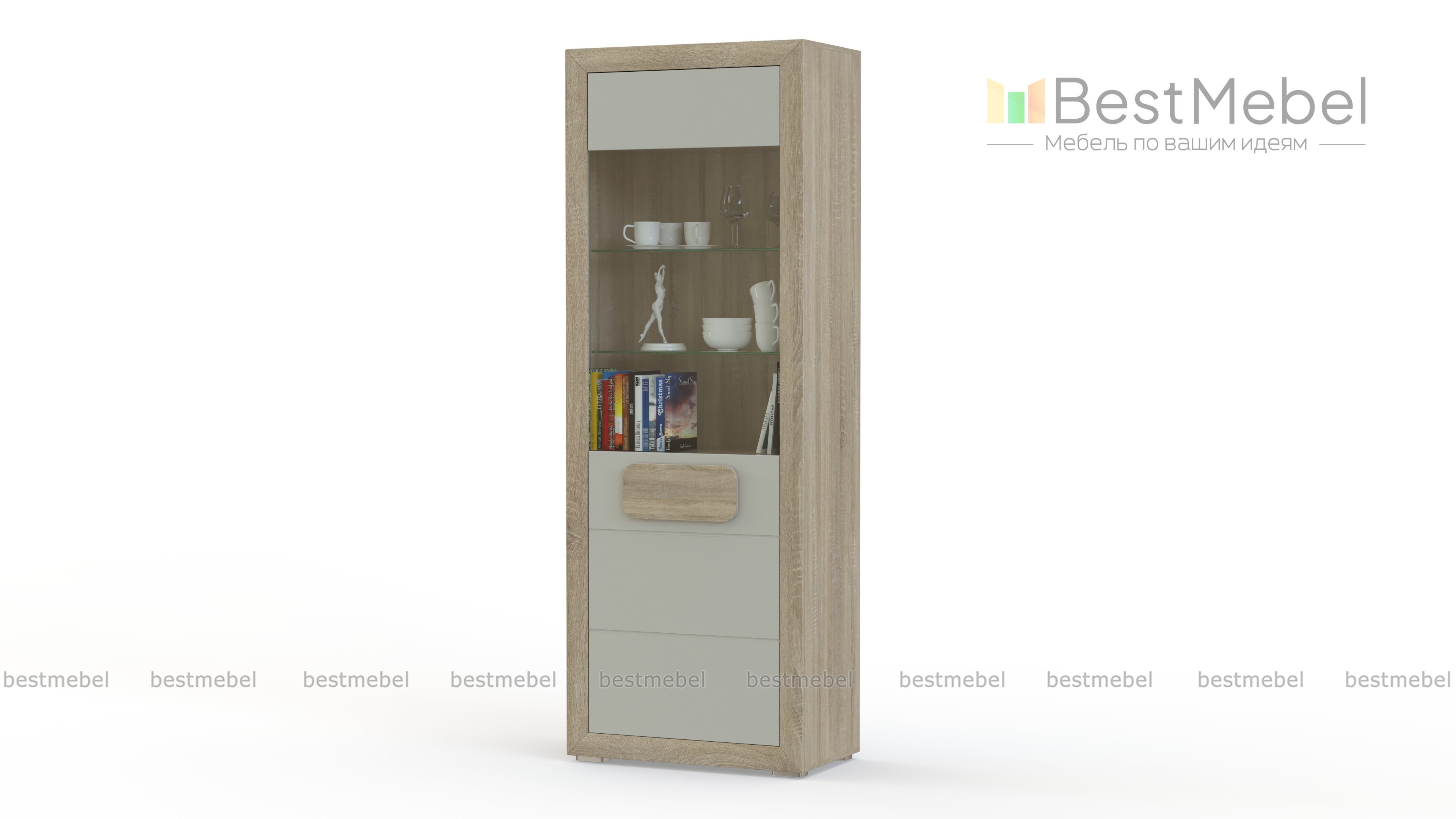 Шкаф-пенал Тинзано 1 BMS, выполненный в сочетании древесных тонов и нежного бежевого глянца с фрезеровкой, гармонично дополнит меблировку современной гостиной. Распашное отделение с застекленной секцией и оригинальной накладной ручкой позволит вам разместить как разнообразные бытовые вещи, так и предметы декора, посуду или книги. Особенно эффектный вид предметам в витрине придаст встроенная подсветка. Купить шкаф-пенал Тинзано 1 BMS приглашаем к нам в интернет-магазин по выгодной цене.