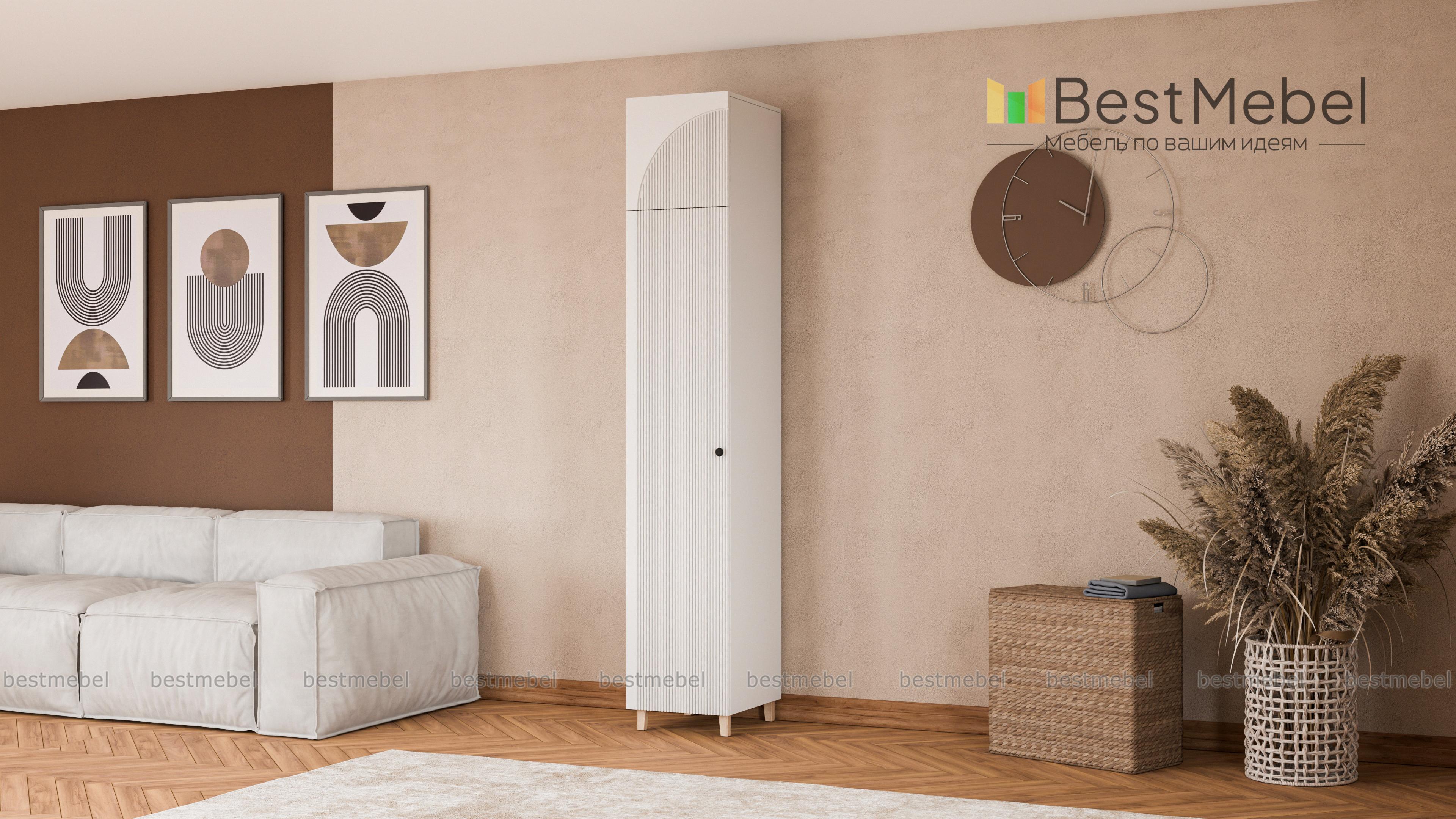 Шкаф-пенал Вивьен 2 BMS оборудован одним распашным отделением, а дополнительное место хранения создает антресоль. Высокая конструкция с деревянными ножками легко вписывается в ограниченное пространство небольшой квартиры. Стильный акцент в лаконичном современном дизайне — рельефная отделка на цветном фасаде из МДФ. Купить шкаф-пенал Вивьен 2 BMS с выбором размеров и гармонирующей с интерьером цветовой гаммы вы сможете на сайте нашего интернет-магазина.