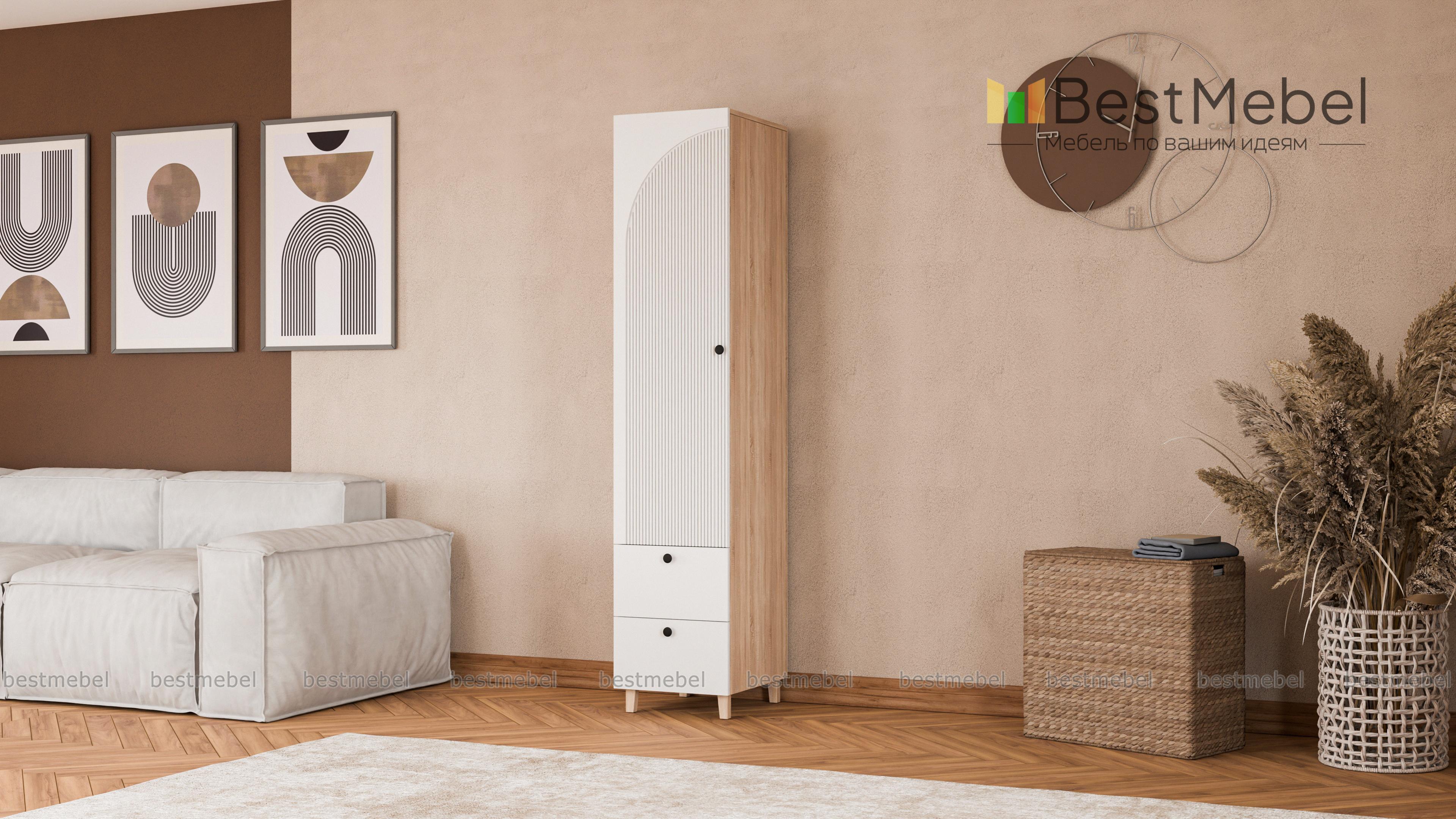 Шкаф-пенал Вивьен 4 BMS может использоваться как часть комплекта или самостоятельный предмет обстановки спальни, гостиной или прихожей. Стильный пенал с высокими ножками выполнен из ламинированной плиты и МДФ с рельефной отделкой. Помимо основного распашного отделения модель укомплектована парой выдвижных ящиков для хранения мелких вещей. Купить шкаф-пенал Вивьен 4 BMS приглашаем в наш интернет-магазин с изготовлением по индивидуальным размерам.