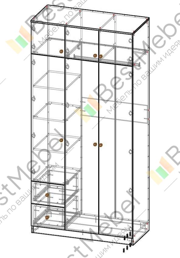 Шкаф Поларис 3.2А BMS – одна из самых вместительных моделей этой серии. Три вертикальных отделения дополняются двумя выдвижными ящичками внизу, и тремя антресолями, что заметно увеличивает вместимость шкафа. Широкий выбор цветового оформления позволит наиболее удачно интегрировать новую мебель в любой интерьер. Если Вас не устраивают параметры базовой модели, вы можете указать подходящие для Вас. Заказать мебель на нашем сайте – легко и недорого.