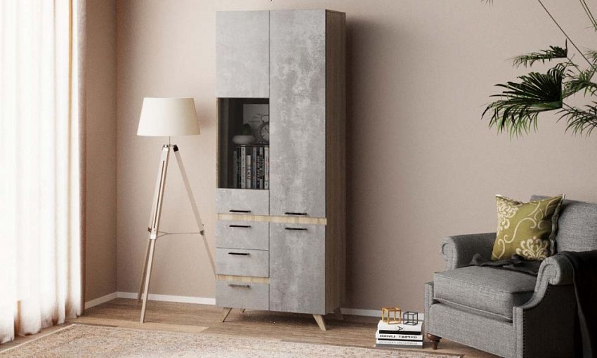 Шкаф распашной Дантес 4 BMS с корпусом в древесных тонах и фасадом с имитацией поверхности бетона гармонично дополнит интерьеры в стиле лофт. Компактная по размеру модель оборудована глухими распашными отделениями с полками, витриной и тремя выдвижными ящиками для мелочей. Комбинированная конструкция позволит разместить не только домашний текстиль и бытовые мелочи, но и книги, красивую посуду, предметы декора. Купить шкаф распашной Дантес 4 BMS приглашаем на сайт нашего интернет-магазина.