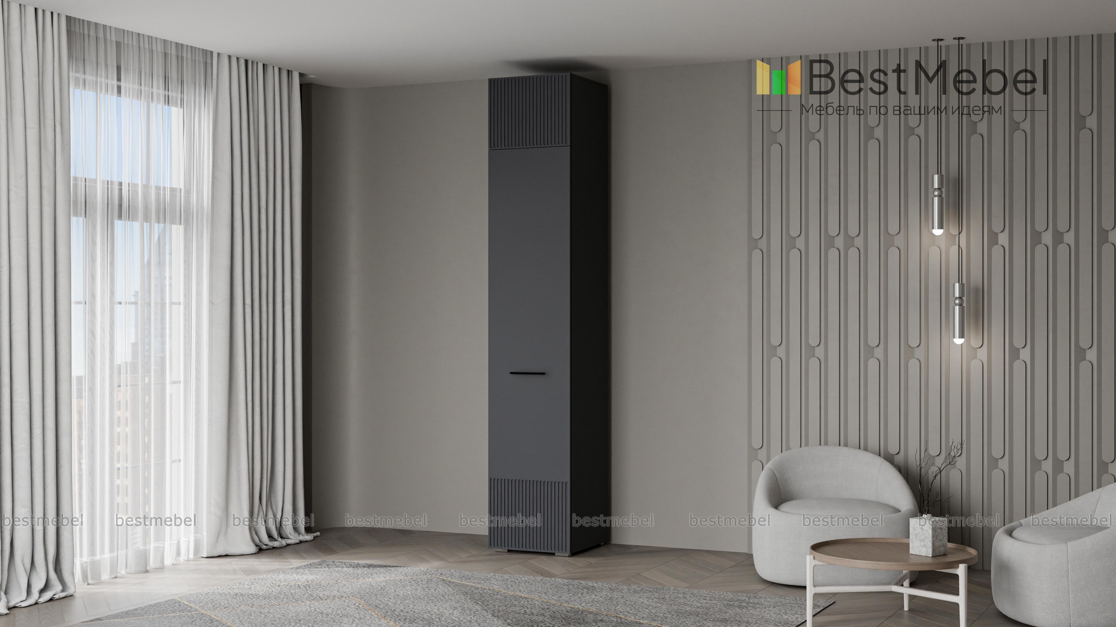 Шкаф распашной Декарт 7 BMS с одной дверцей и антресолью подходит для самых разных помещений. Высокий узкий шкаф с простым и выразительным благодаря фрезеровке дизайном оснащен необходимой для размещения вешалок с одеждой перекладиной и полочкой. Дополнительный отсек сверху значительно увеличивает пространство для хранения. Купить шкаф распашной Декарт 7 BMS вы сможете недорого в нашем интернет-магазине, подобрав подходящие именно вам цвета и размеры.