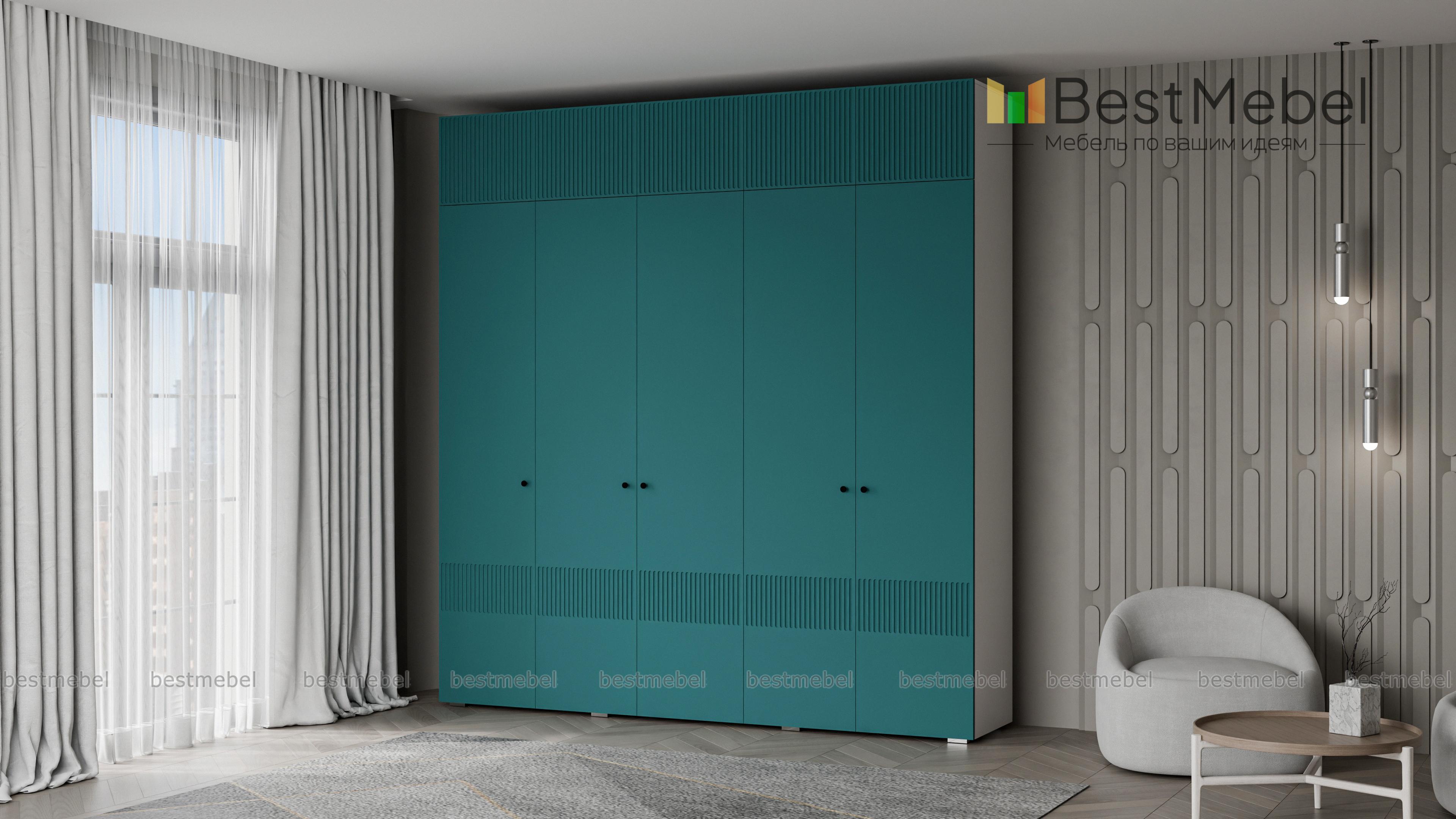 Шкаф распашной Джосс 11 BMS с антресолью — практичное и эстетическое решение для вашего дома. Пространство будет занято до потолка — значит, появится больше места для хранения как повседневного, так и сезонного гардероба. Внутри пятидверного шкафа располагаются две штанги и ряд бельевых полок, а сплошной фасад яркого аквамаринового цвета декорирован стильным рельефом. Купить шкаф распашной Джосс 11 BMS вы сможете на сайте нашего интернет-магазина в необходимом размере и любых оттенках из каталога.