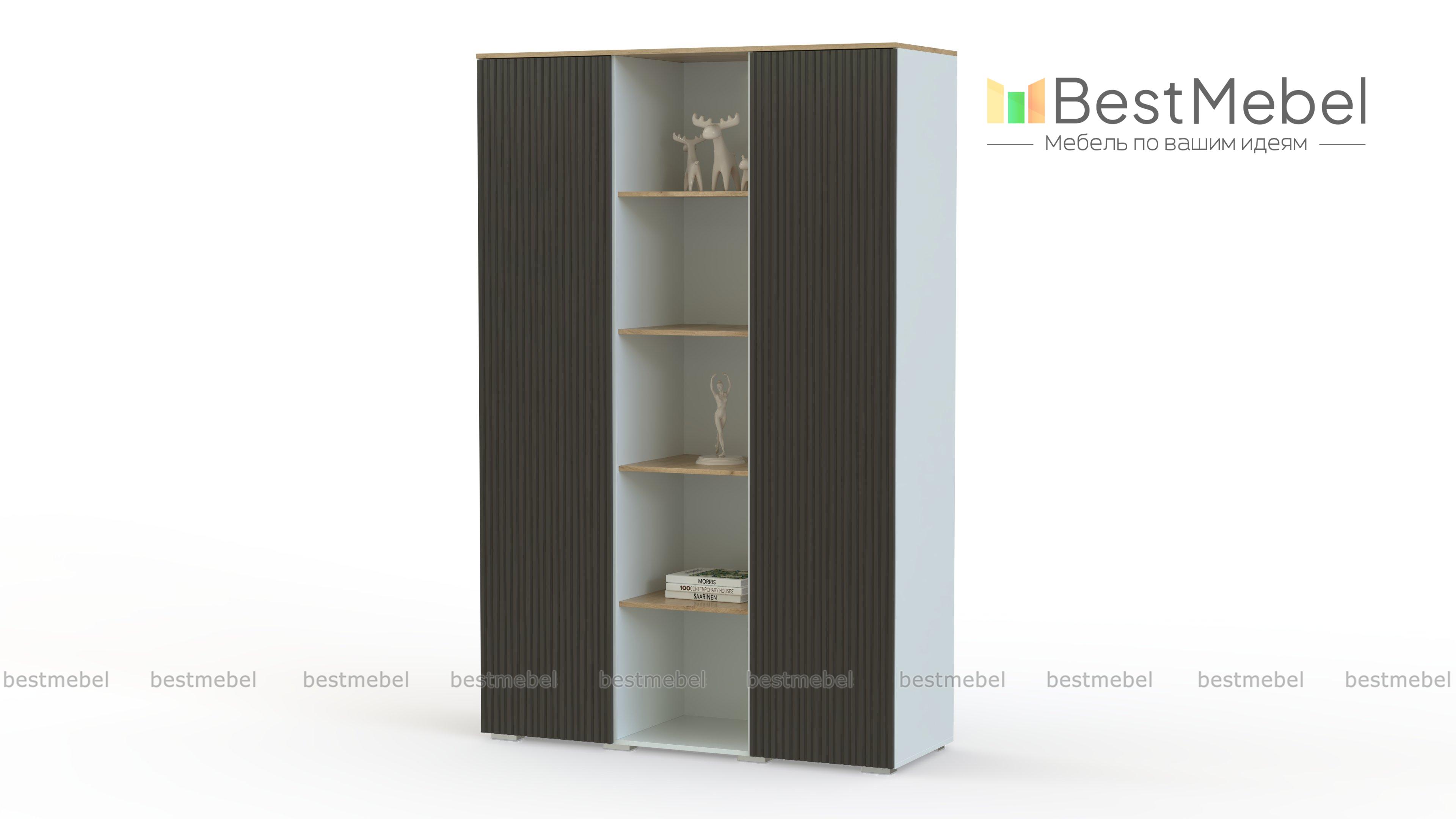 Шкаф распашной Эвил 22 BMS оборудован двумя закрытыми боковыми отделениями и просторными полками для книг или декора в центре. Многофункциональная модель будет востребована в интерьере гостиной или спальни для хранения и демонстрации вещей. Особенную выразительность шкафу в нейтральной цветовой гамме придают древесные акценты и вертикальная фрезеровка фасада. Купить шкаф распашной Эвил 22 BMS приглашаем в наш интернет-магазин с выбором цвета и размеров.