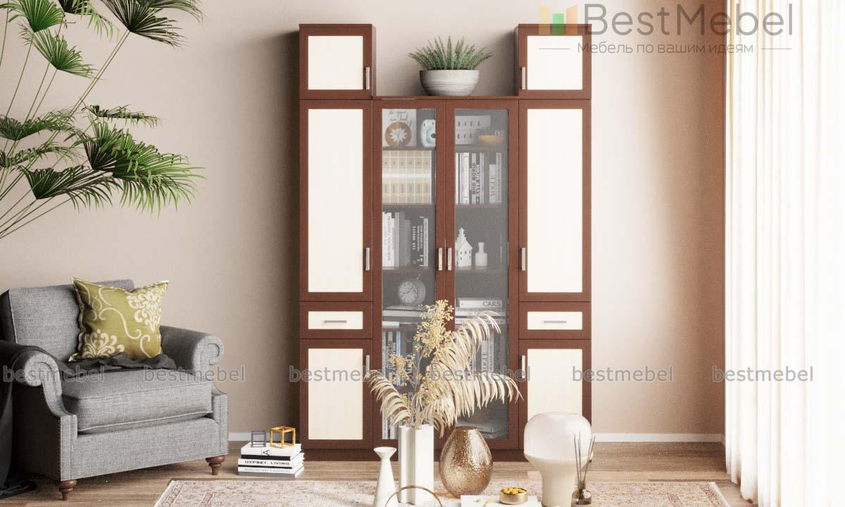 Шкаф распашной Фауст 2 BMS будет эффектно смотреться в интерьере гостиной и разместит большое количество вещей. Разноуровневая модель объединила расположенную в центральной части двухдверную распашную витрину и два пенала с глухими отделениями, выдвижными ящиками для мелочей и антресолями. Элегантный вид шкафу придают рамочные фасады в контрастных древесных тонах. Купить шкаф распашной Фауст 2 BMS и дополнить комнату удобной системой хранения вам поможет наш интернет-магазин.