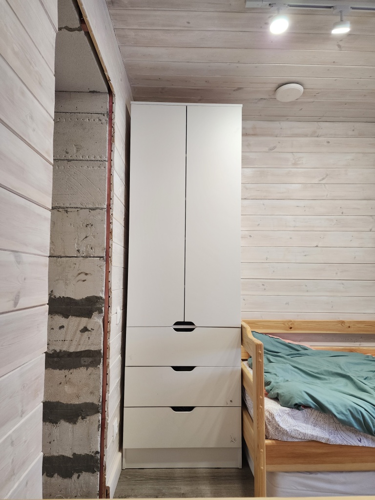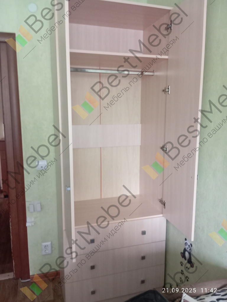 Отличный шкаф! Очень функциональный. Заказывали 80х220. Изготовление и доставка вовремя, сборщик вообще молодец! Приезал на следующий день после доставки, проверил комплект и на брак. Быстро, тихо, аккуратно все собрал. Убрал мусор. Из минусов только доставка, проверяйте доставщиков, у нас неожиданно увеличился километраж от МКАД и цена за подъем, после звонка в компанию все решили. Сам шкаф просто красавчик, лучше чем представляли.