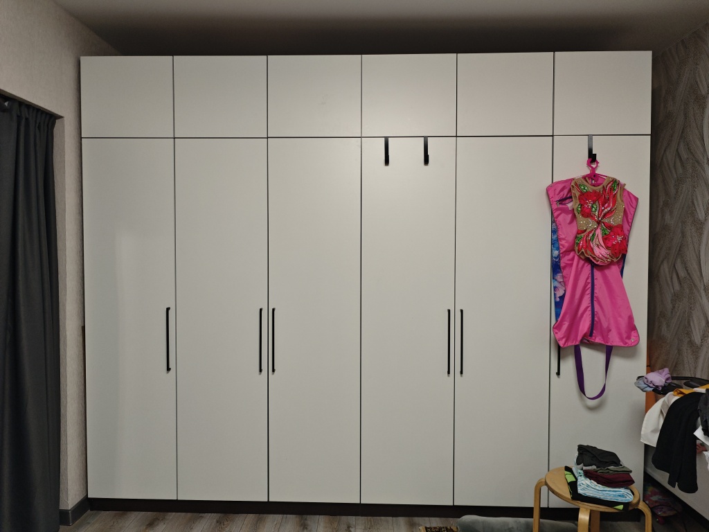 Заказ №1133213. Заказ был по индивидуальным размерам. Подтвердили на следующий день. Быстро изготовили и доставили, буквально в течении нескольких дней. Всё пришло хорошо упаковано, без изъянов. Сборку заказывали у партнёров, через сайт. Шкафом довольны, очень вместительный, смотрится отлично. Качество супер.