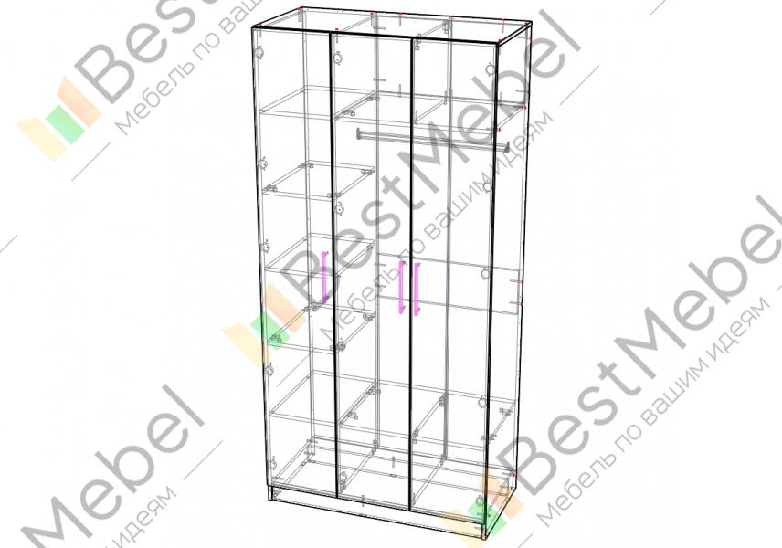 Шкаф распашной Остин Лео 7 BMS практически универсален за счет средних габаритов и минимализма в дизайне. Три створки с установленными для удобства стильными скобами образуют сплошной гладкий фасад. Система хранения трехдверного шкафа включает в себя отделение со штангой для одежды на вешалках, две полки с разделителями и отдельную бельевую секцию слева. Купить шкаф распашной Остин Лео 7 BMS вы всегда сможете в нашем интернет-магазине, самостоятельно подобрав цвет, габариты и фурнитуру.