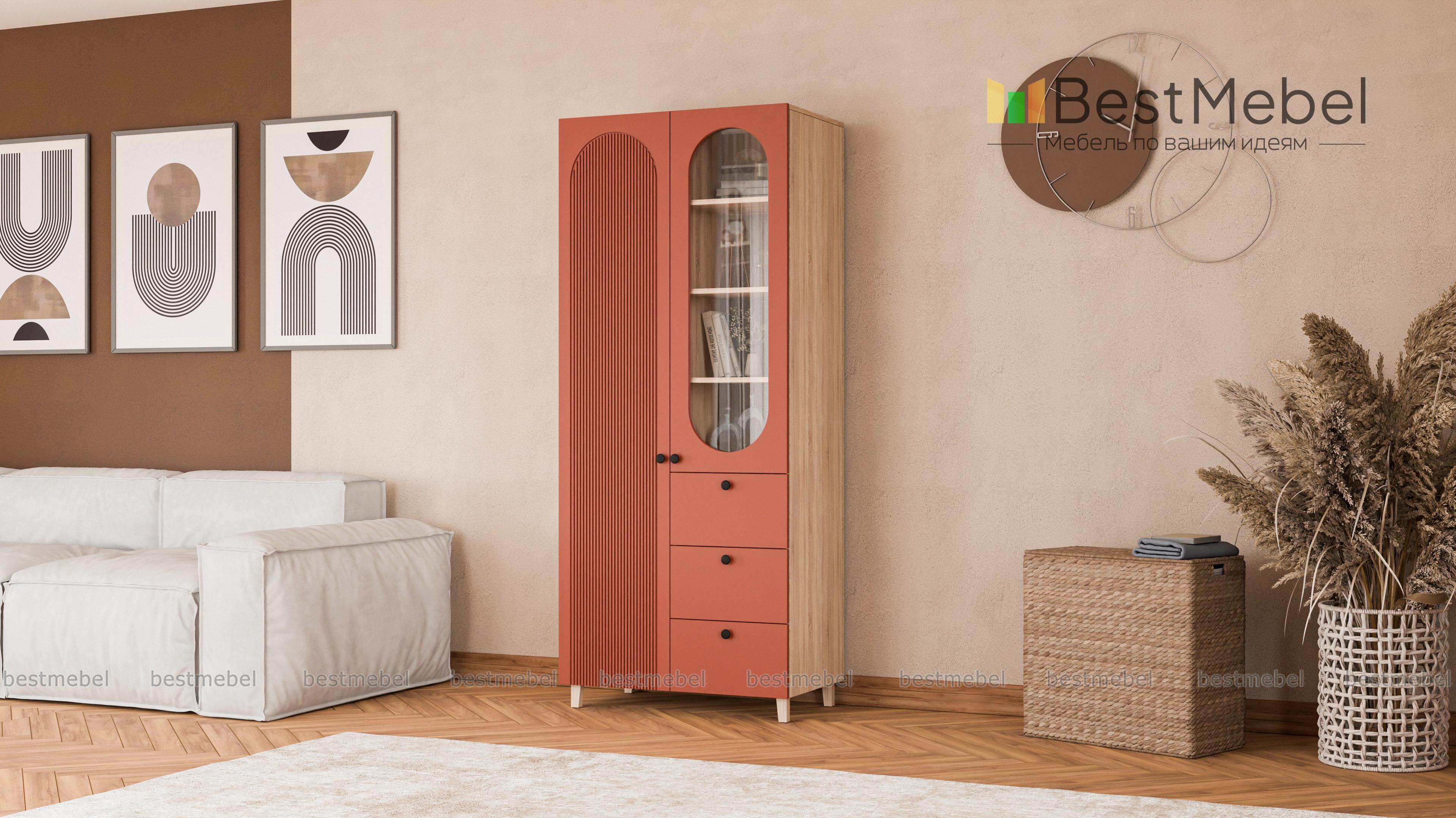 Шкаф распашной Рене 8 BMS при своих скромных размерах учитывает самые разные потребности в хранении. Для одежды, книг, важных мелочей и декора предусмотрены закрытое отделение слева, витрина и три выдвижных ящика. Гармонично смотрится сочетание светлой отделки с деревянными ножками, а овальные вырезы и фрезеровка придают этой современной модели элегантность классики. Купить шкаф распашной Рене 8 BMS вы сможете в нашем интернет-магазине, по желанию изменив цвет и размеры.