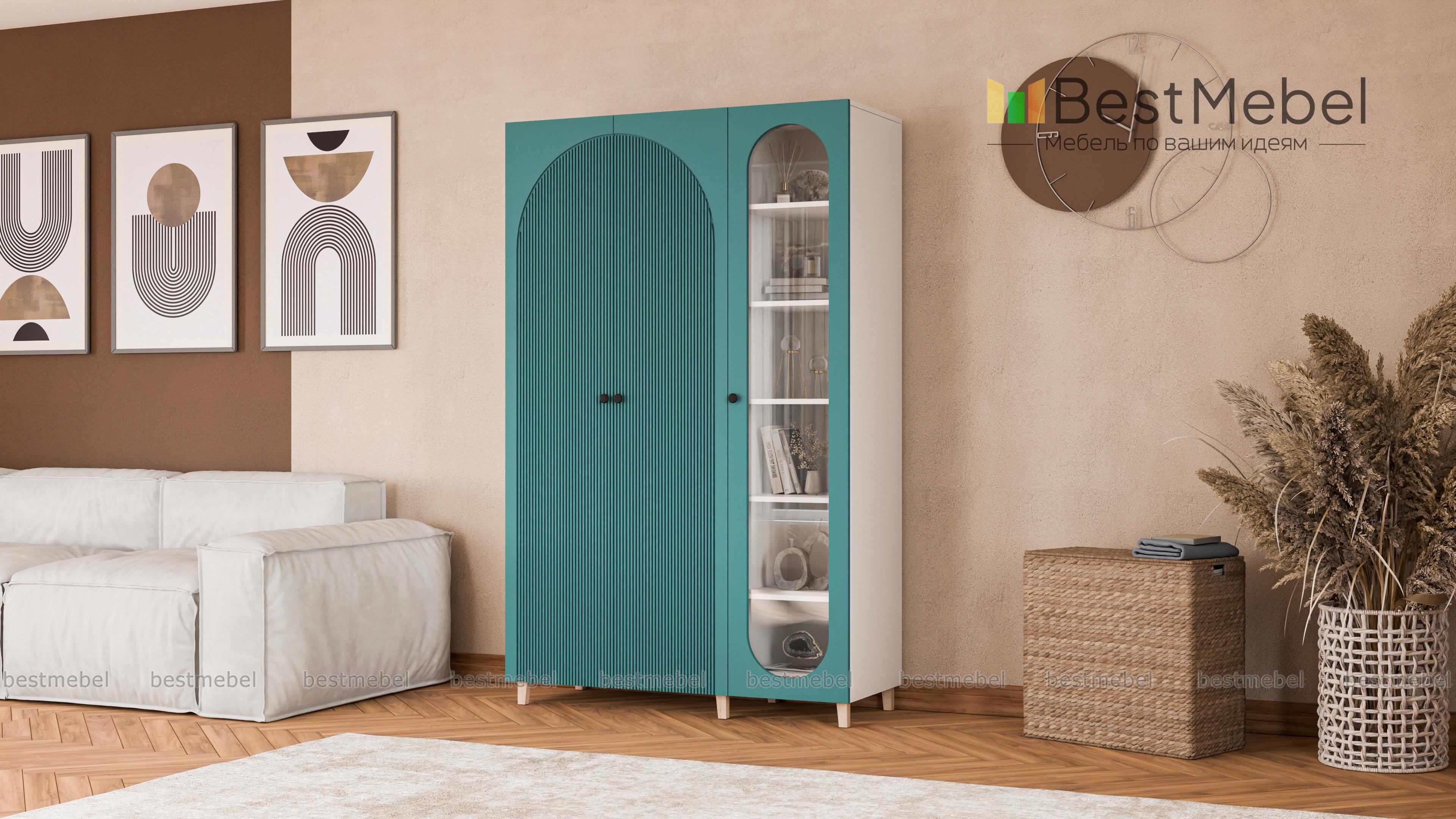 Шкаф распашной Вивьен 21 BMS объединил платяное отделение с двумя дверцами и однодверную витрину. Многофункциональная модель для детской или гостиной позволяет разместить не только одежду, но и книги, посуду, разнообразные мелочи и декор. Каркас и ножки в древесных тонах дополнены износостойкими фасадами из МДФ с фигурными вырезами и стильной фрезеровкой. Купить шкаф распашной Вивьен 21 BMS в любом удобном размере и оттенке из каталога приглашаем в наш интернет-магазин.