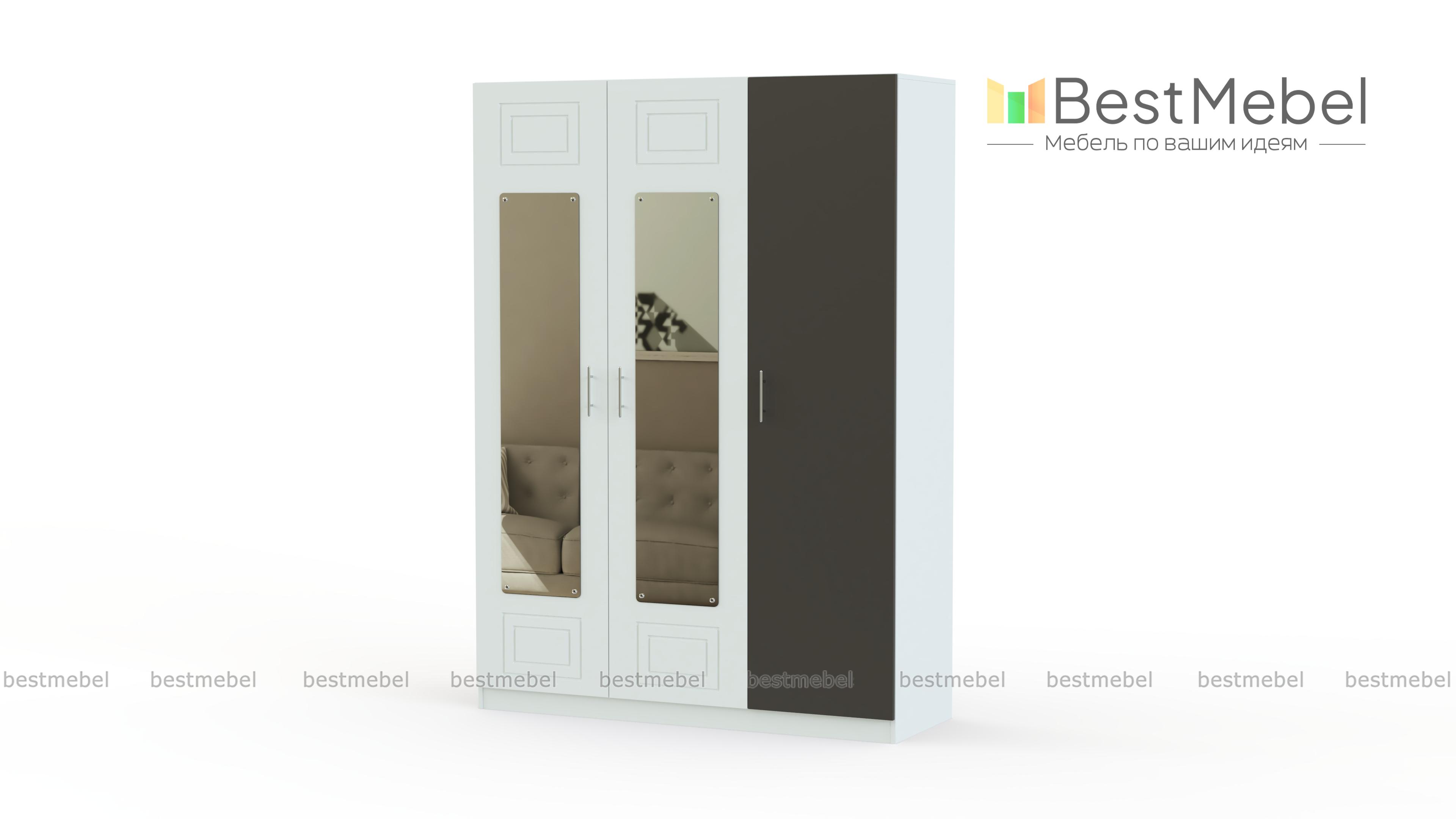 Шкаф с зеркалом Анастасия 3 BMS выгодно отличается вместительностью и элегантным современным дизайном. Распашная модель с контрастными фрезерованными фасадами гармонично дополнит спальный гарнитур и поможет с хранением одежды и постельного белья. Трехдверный шкаф оборудован платяным отделением со штангой и полками, две створки – с ростовыми зеркалами, незаменимыми для ухода за собой и примерок. Купить шкаф с зеркалом Анастасия 3 BMS вы сможете в нашем интернет-магазине по лучшей цене.
