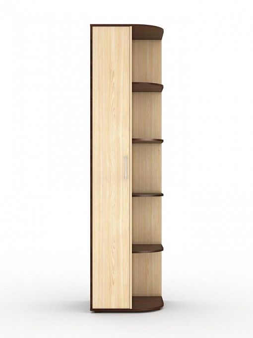 Шкаф-стеллаж Берта BMS может играть роль торцевого элемента в композиции или использоваться самостоятельно для меблировки спален, гостиных или прихожих. Узкий распашной шкаф, дополненный рядом открытых полок, удобен для хранения одежды, аксессуаров и важных мелочей. Прочная и долговечная конструкция выполнена из ламинированной плиты древесных тонов, углы для безопасности скруглены. Купить шкаф-стеллаж Берта BMS с возможностью выбора цвета и размеров приглашаем в наш интернет-магазин.