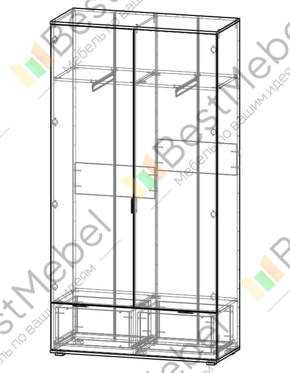 Заказал этот шкаф по своим размерам и цвету, изготовили за срок меньше недели и привезли на день раньше. Большой минус, что компания не предоставляет инструкцию по сборке изделия, а только схему со спецификацией, разбирались, как и в каком порядке его собирать самостоятельно, хорошо, что все отверстия уже присутствовали на деталях. Так же весь крепеж был сложен в один пакет, какие саморезы откуда решали по ходу сборки, благо их там полно. Не хватило одной стяжки и держателя для штанги, это конечно минус, но для меня не критичный, все равно оргалит я сажал не на гвозди, как предполагалось, а на саморезы и дополнительно укрепил конструкцию мебельными уголками. Шкаф хорош, своих денег стоит.