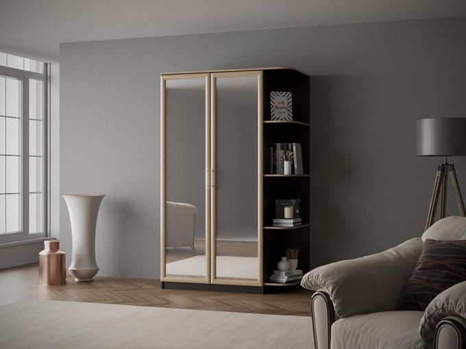 Шкаф Стайл 2 BMS - это двухдверный распашной гардероб и книжный стеллаж. Многофункциональный шкаф с зеркальными дверцами рационально использует доступное пространство для хранения одежды, обуви, книг и всевозможных аксессуаров. Контрастная окантовка позволяет визуально выделить полки и фасад, придав силуэту графичность и легкость. Купить шкаф Стайл 2 BMS вы сможете на сайте нашего интернет-магазина с выбором нужных размеров, фурнитуры и цветовой палитры.