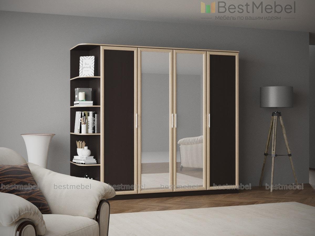 Распашной шкаф Стайл 4 BMS поможет вам разместить одежду на вешалках и вещи в сложенном виде, а также книги, всевозможные аксессуары и стильный декор. Отделения со штангами в центре закрыты зеркальными створками, а бельевые отделения по бокам имеют глухие рамочные фасады. Открытые торцевые полочки скруглены для комфортного и безопасного пользования. Купить распашной шкаф Стайл 4 BMS для спального интерьера или прихожей вы сможете на сайте нашего интернет-магазина.