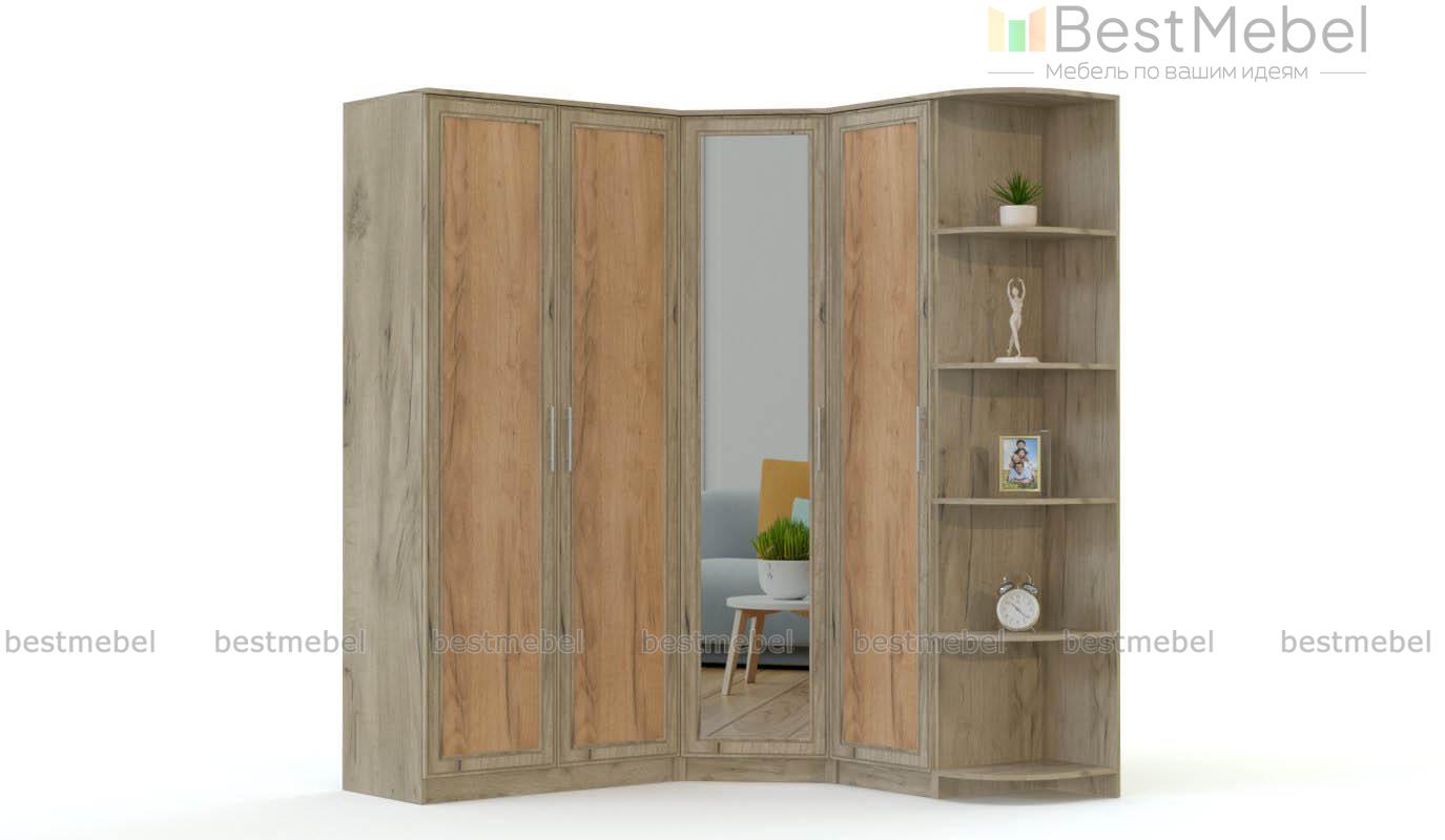 Угловой шкаф Астория 3 BMS отличается элегантным классическим дизайном и позволяет по максимуму использовать доступное пространство. Композиция объединила два однодверных модуля – прямой и угловой, двухдверный платяной шкаф и торцевой стеллаж со скругленными полками. Долговечные и простые в уходе рамочные фасады выполнены в контрастных древесных тонах, полностью зеркальная створка станет заменой отдельному аксессуару. Купить угловой шкаф Астория 3 BMS вы сможете в нашем интернет-магазине с выбором фурнитуры по каталогу.