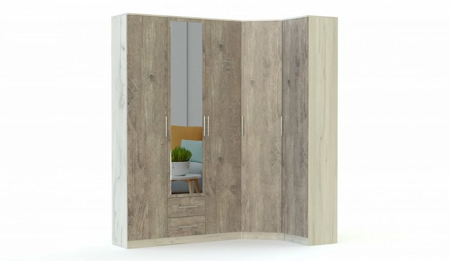 Угловой шкаф Фиеста К 2 BMS имеет Г-образную форму, позволяющую выгодно использовать особенности планировки. Выполненный в нейтральных оттенках с имитацией текстуры дерева, шкаф выглядит актуально и станет элементом дизайна современной квартиры. Композиция объединила вместительный угловой модуль, пенал и трехдверный шкаф с ростовым зеркалом на фасаде и парой выдвижных ящиков для хранения мелочей. Купить угловой шкаф Фиеста К 2 BMS приглашаем в наш интернет-магазин с выбором цвета и размеров.