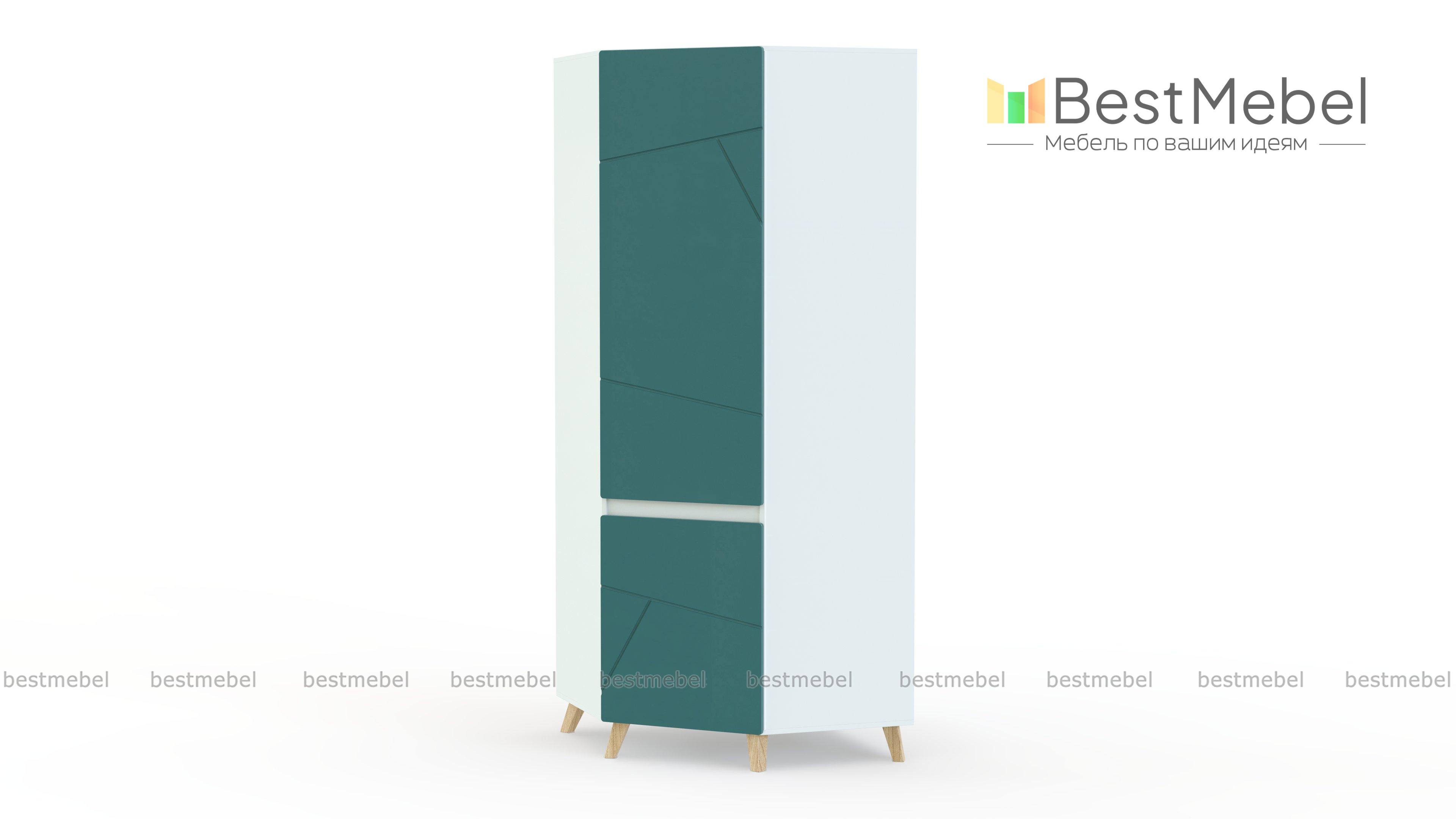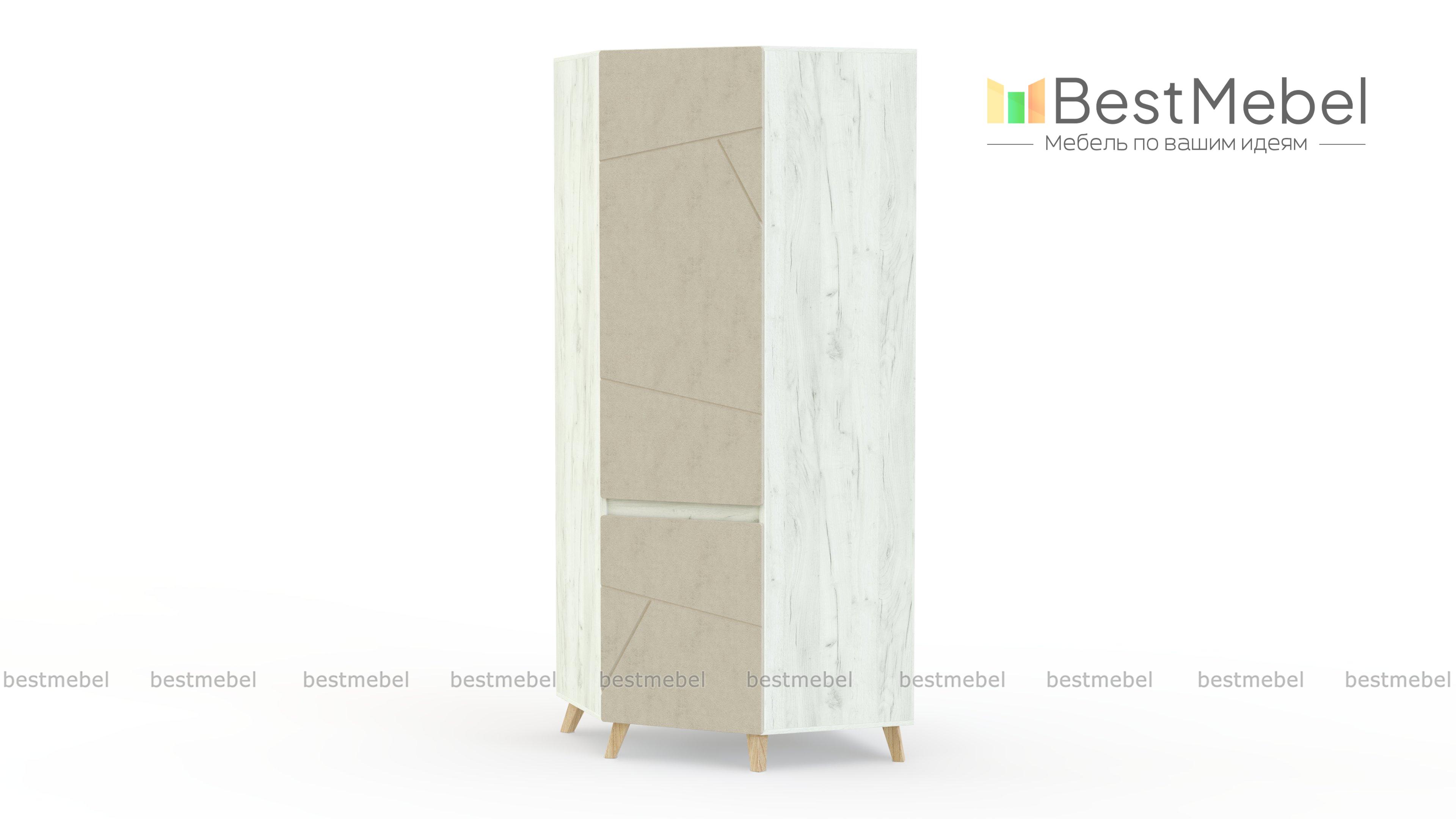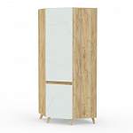 Угловой шкаф Олди BMS выполнен в форме трапеции, а необычным решением станут высокие скошенные опоры. Оборудованный двумя отделениями с распашными дверцами, шкаф поможет систематизировать хранение одежды, обуви и аксессуаров. Для создания современного дизайна использованы ламинированная плита крафтовых древесных тонов и цветные фасады с фрезеровкой. Купить угловой шкаф Олди BMS с изготовлением по индивидуальным размерам вы сможете в нашем интернет-магазине.