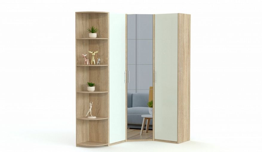 Угловой шкаф Вирджиния 2 BMS – лаконичный и функциональный, прекрасно подходит для создания современных интерьеров. Удобная для хранения одежды, домашнего текстиля и разнообразных мелочей композиция объединила два пенала, угловой модуль с зеркальным фасадом и торцевой радиусный стеллаж. В оформлении шкафа скомбинированы светлые древесные тона и белый, дверцы оснащены ручками-рейлингами. Купить угловой шкаф Вирджиния 2 BMS и эффективно использовать доступное пространство вам поможет наш интернет-магазин.